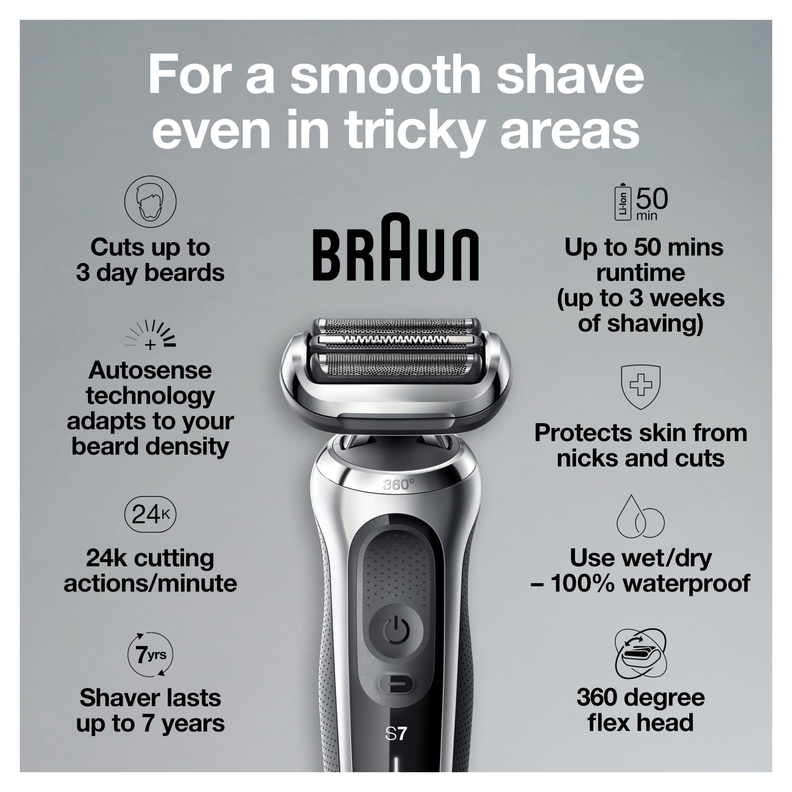 Braun Series 7 7085cc Flex Rechargeable Wet & Dry Men-s Electric Shaver with Clean & Charge Station. Stubble & Beard Trimmer