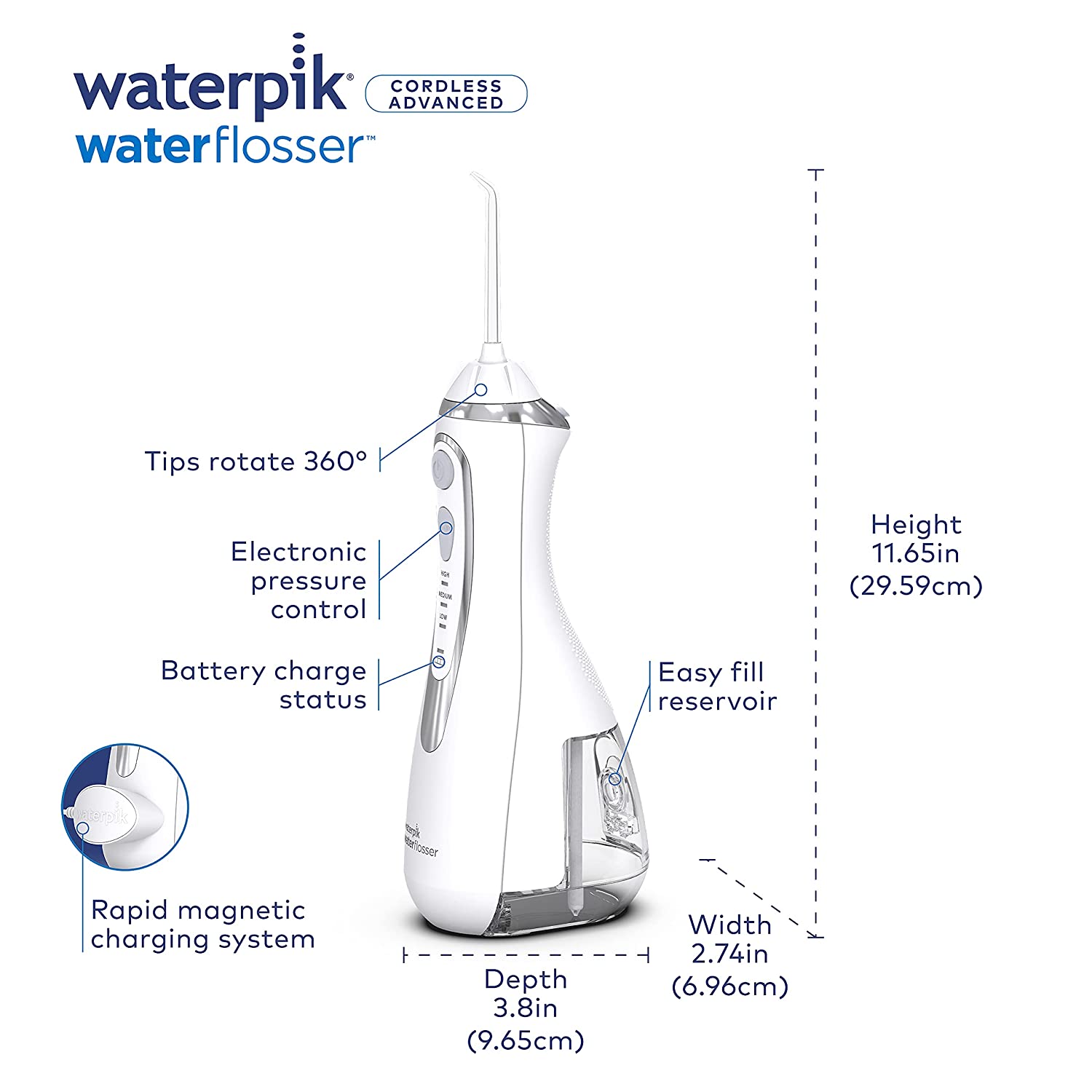 Waterpik Cordless Advanced Water Flosser For Teeth. Gums. Braces. Dental Care With Travel Bag and 4 Tips. ADA Accepted. Rechargeable. Portable. and Waterproof. White WP-560