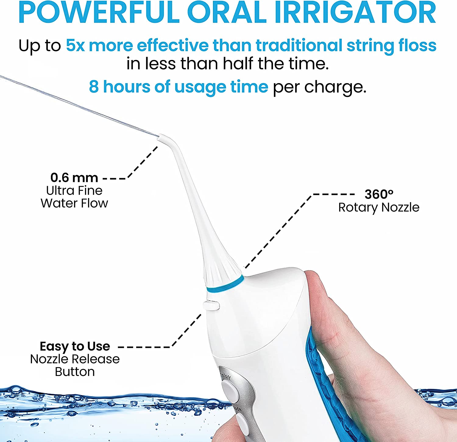 H2ofloss Water Flosser Portable Dental Oral Irrigator with 5 Modes. 6 Replaceable Jet Tips. Rechargeable Waterproof Teeth Cleaner for Home and Travel -300ml Detachable Reservoir (HF-6)