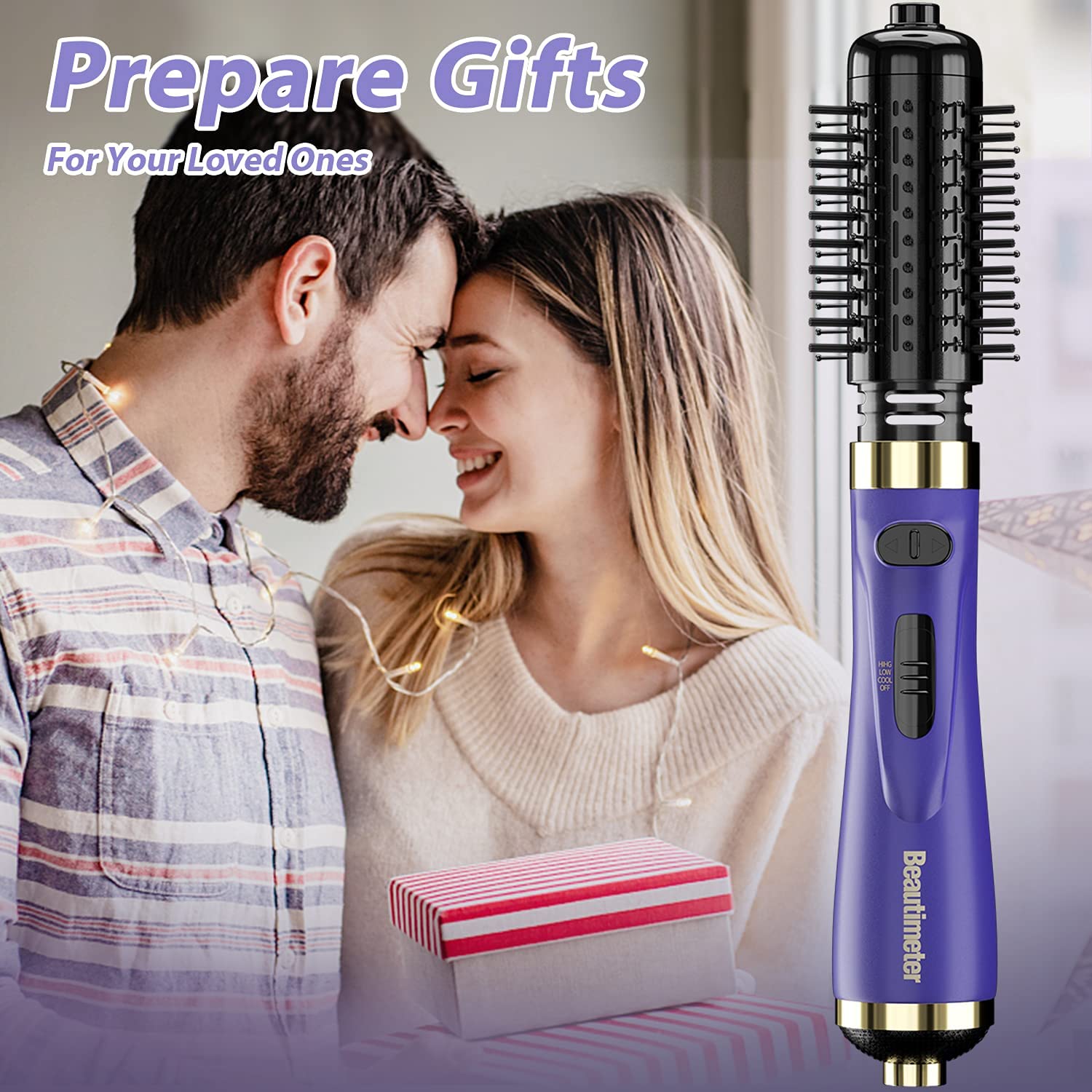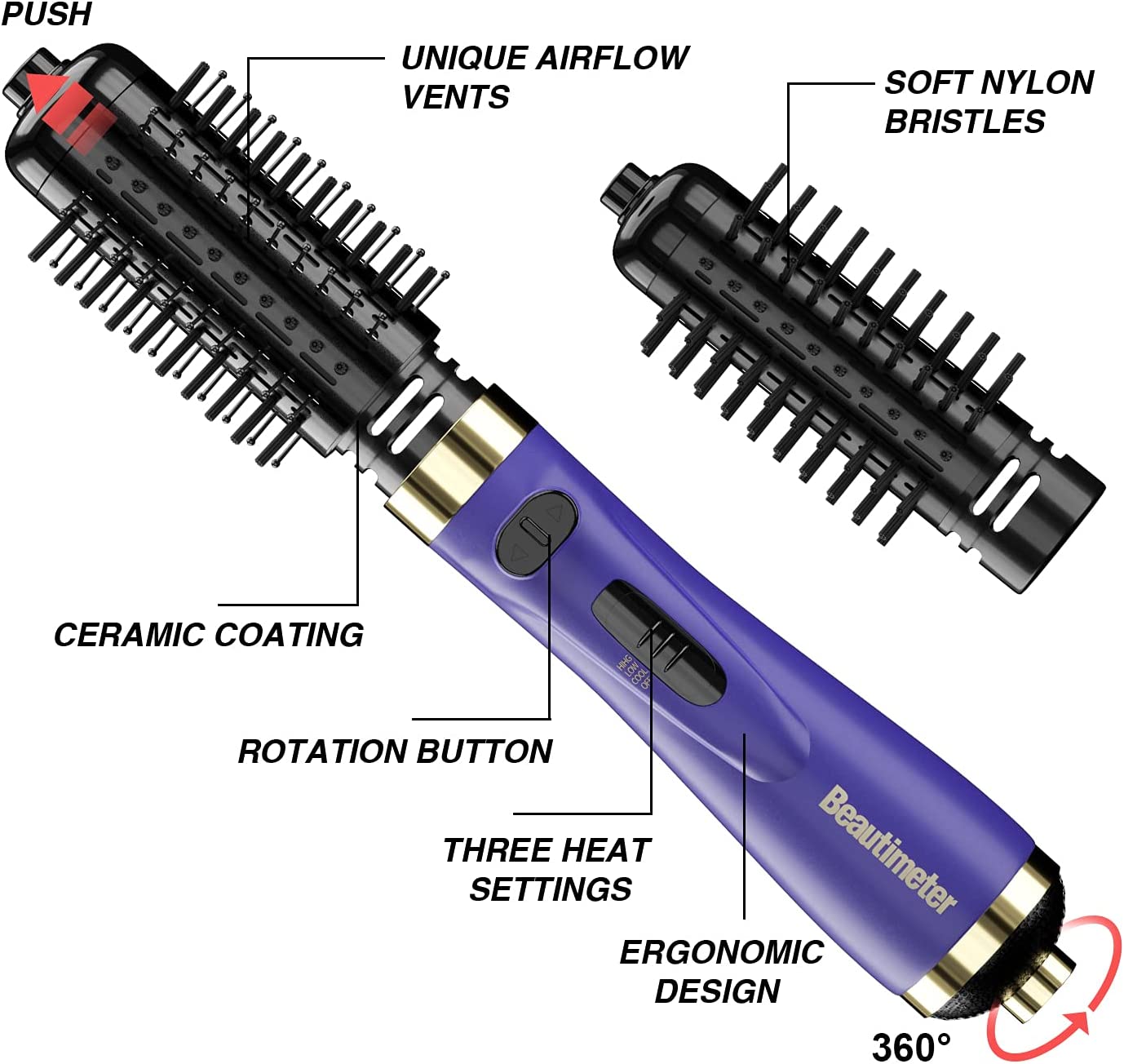 Beautimeter Hair Dryer Brush. 3-in-1 Round Hot Air Spin Brush Kit for Styling and Frizz Control. Negative Ionic Blow Hair Dryer Brush Volumizer. 2 Detachable Auto-Rotating Curling Brush