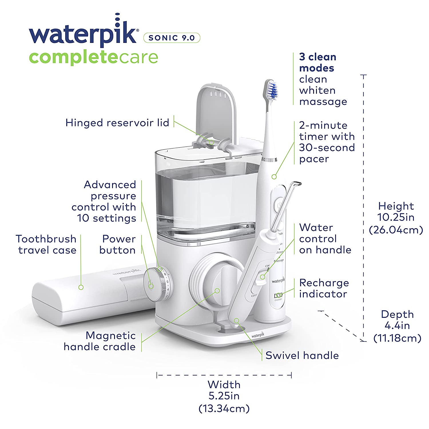 Waterpik Complete Care 9.0 Sonic Electric Toothbrush with Water Flosser. CC-01 White. 11 Piece Set