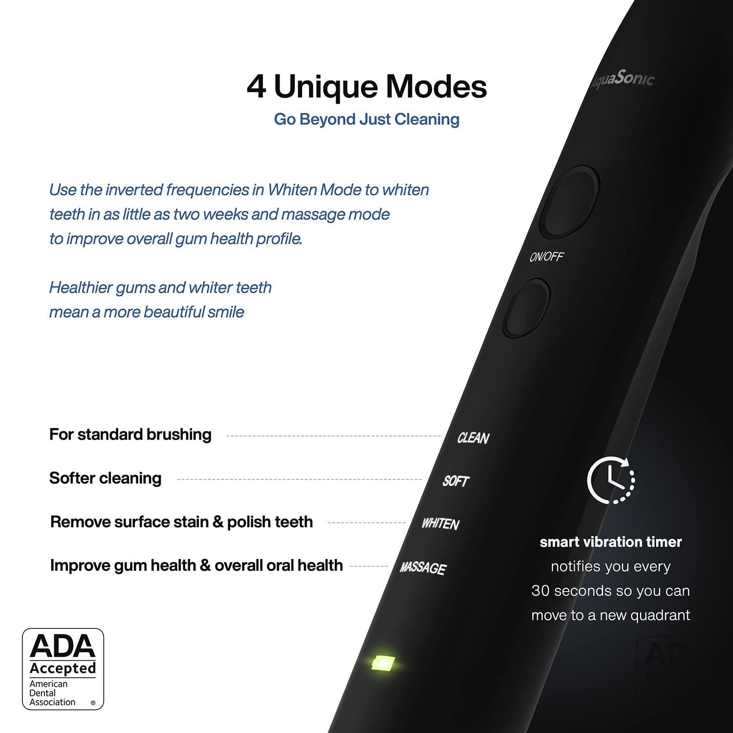 AquaSonic Black Series Ultra Whitening Toothbrush – ADA Accepted Electric Toothbrush - 8 Brush Heads & Travel Case - Ultra Sonic Motor & Wireless Charging - 4 Modes w Smart Timer - Sonic Electric