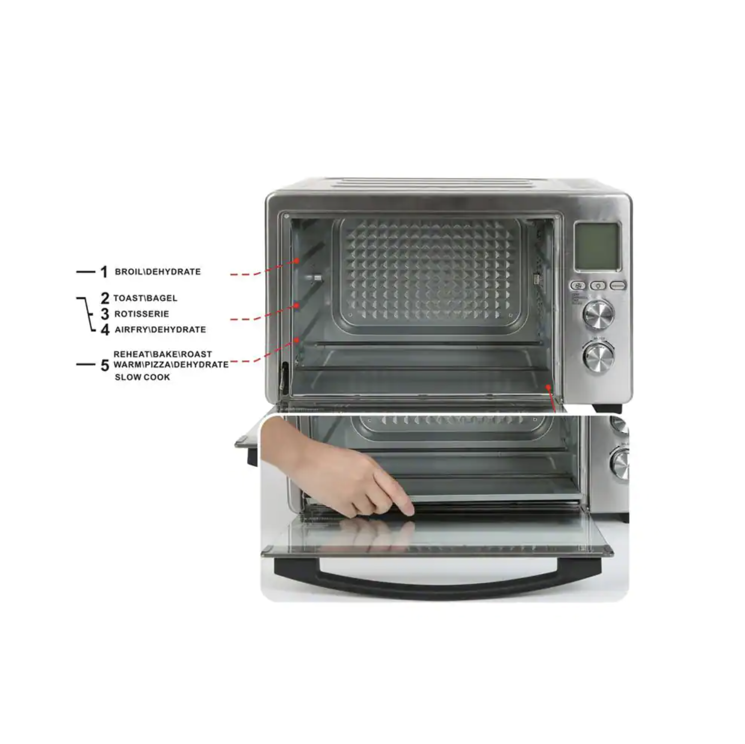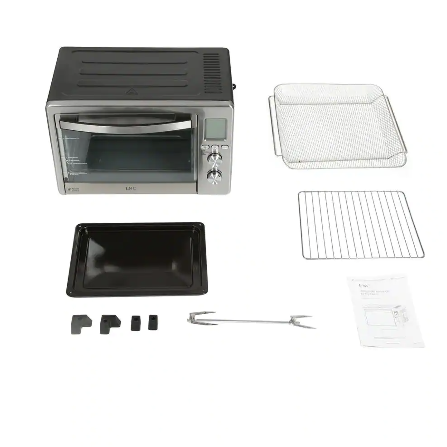 LNC All-in-1 33.8 Qt. Silver Stainless Steel Digital Air Fryer Toaster Oven with Accessories
