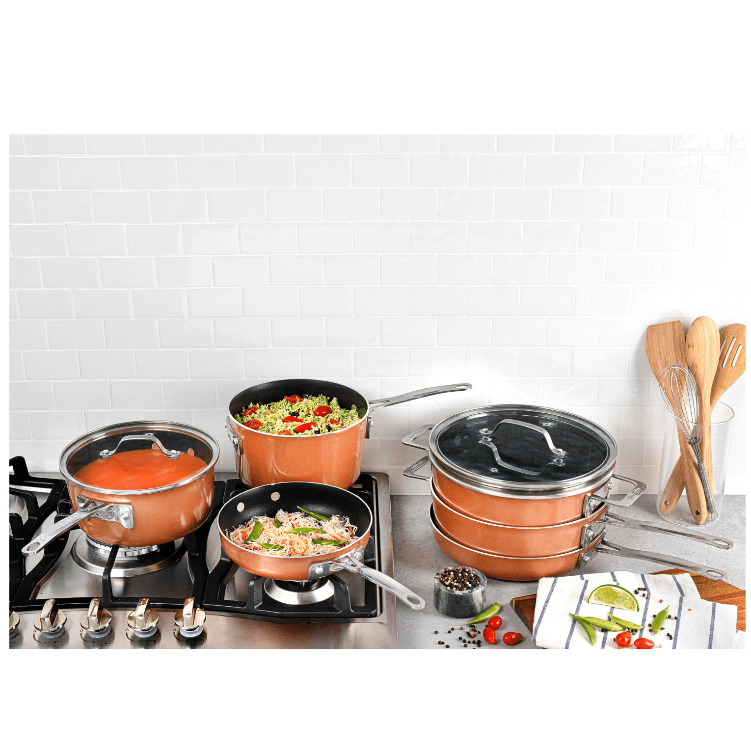 Gotham Steel StackMaster 21-Piece Aluminum Cast Textured Ceramic Nonstick Cookware & Bakeware Set with Utensils