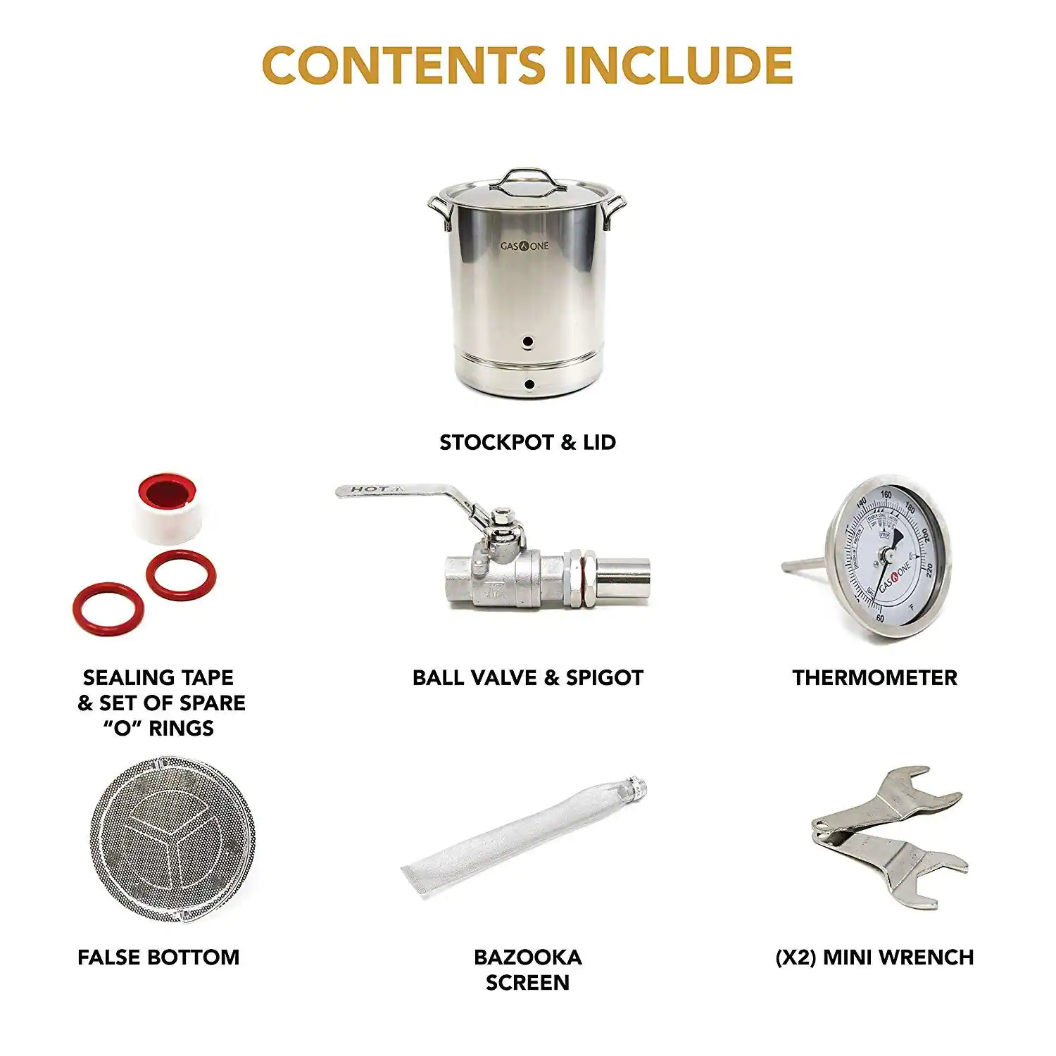 Gas One Brew Kettle Complete Kit 40 qt. Stainless Steel Stock Pot
