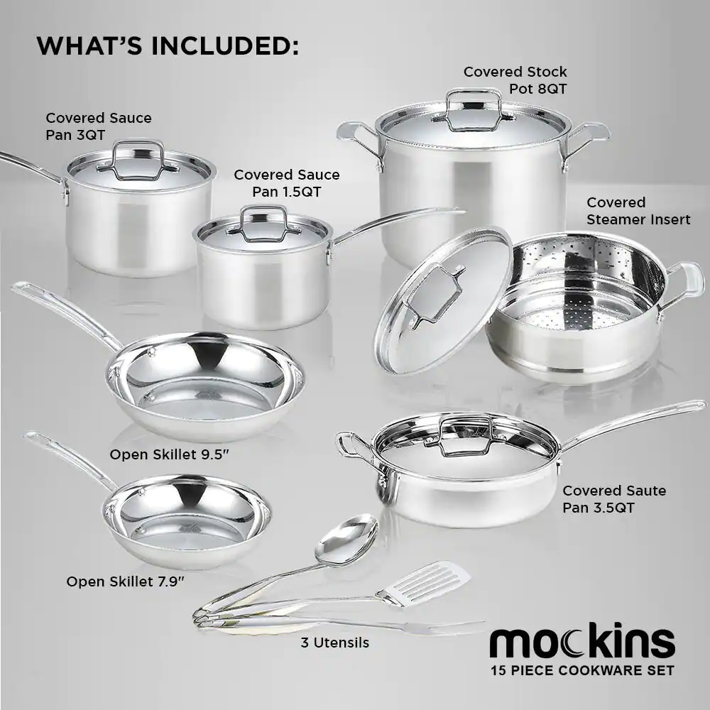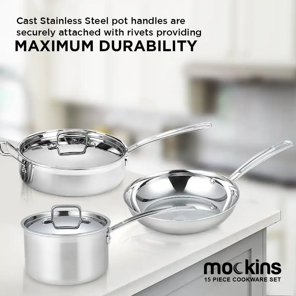 Mockins 15-Piece Premium Grade Stainless Steel Cookware Set with Lids