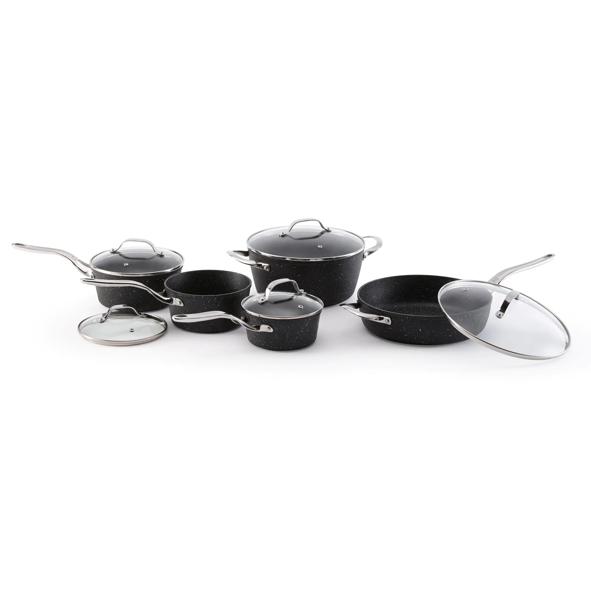 Starfrit The Rock 10-Piece Aluminum Nonstick Cookware Set In Black Speckle