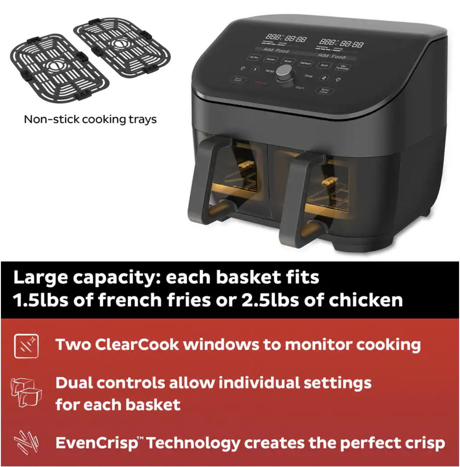 Instant Pot Instant Vortex Plus 8 Qt. Black Dual Basket Air Fryer with ClearCook