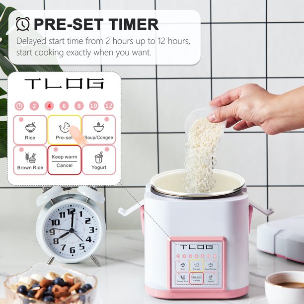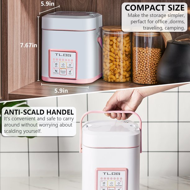 TLOG Digital Mini Rice Cooker 5 Cups Cooked 1.2L With Steam Tray Pink