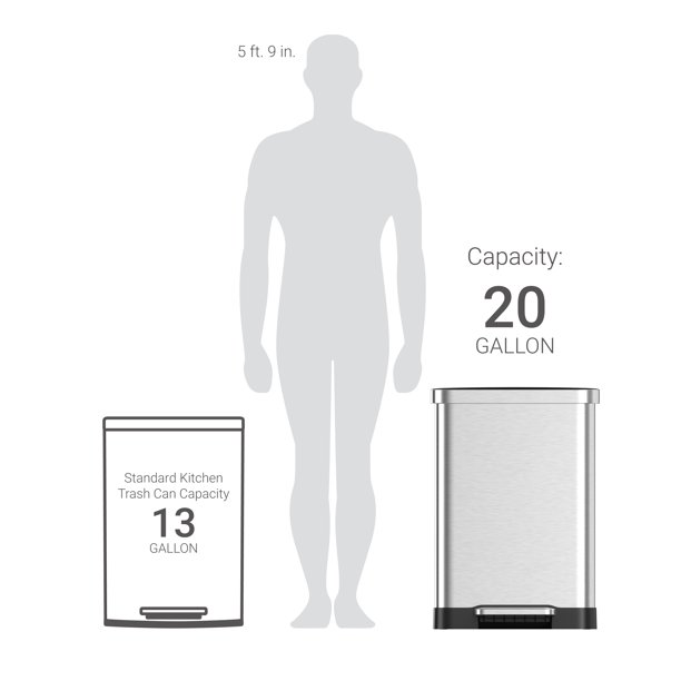 Qualiazero 20 gal Stainless Steel Step On Kitchen Trash Can