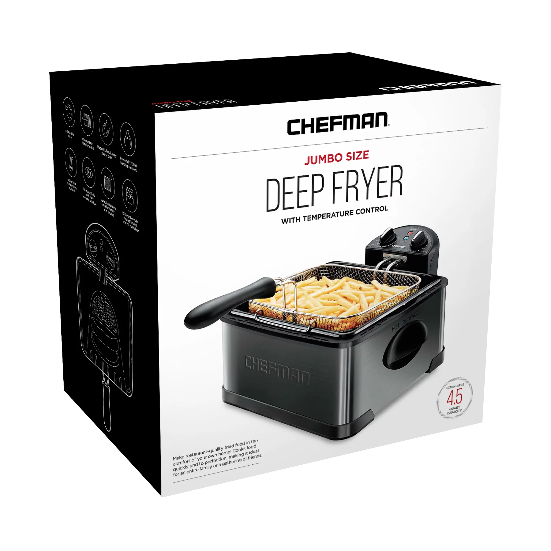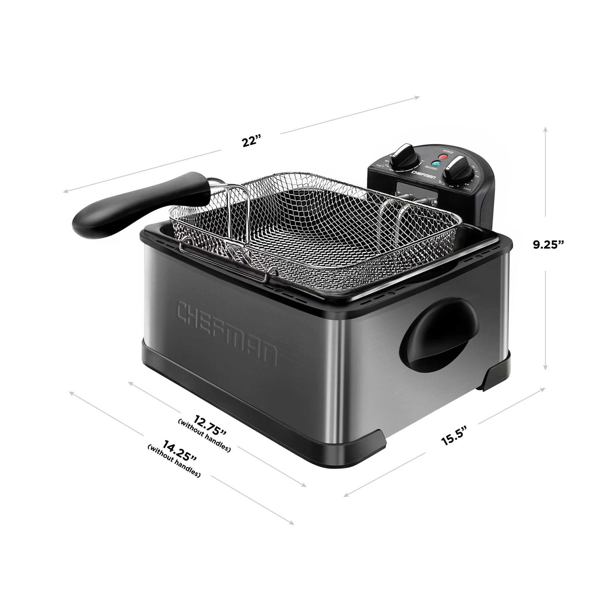 Chefman Stainless Steel Deep Fryer. XL 4.5 Liter Capacity. Black