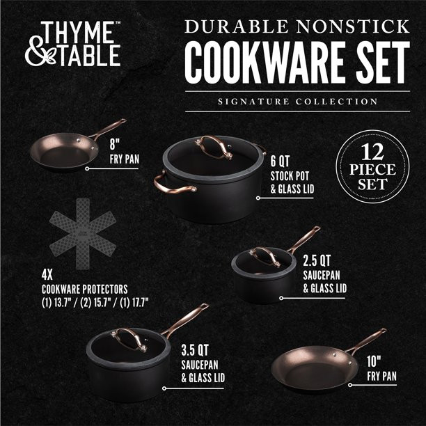 Thyme & Table Non-Stick Pots and Pans 12-Piece Cookware Set. Rose Gold