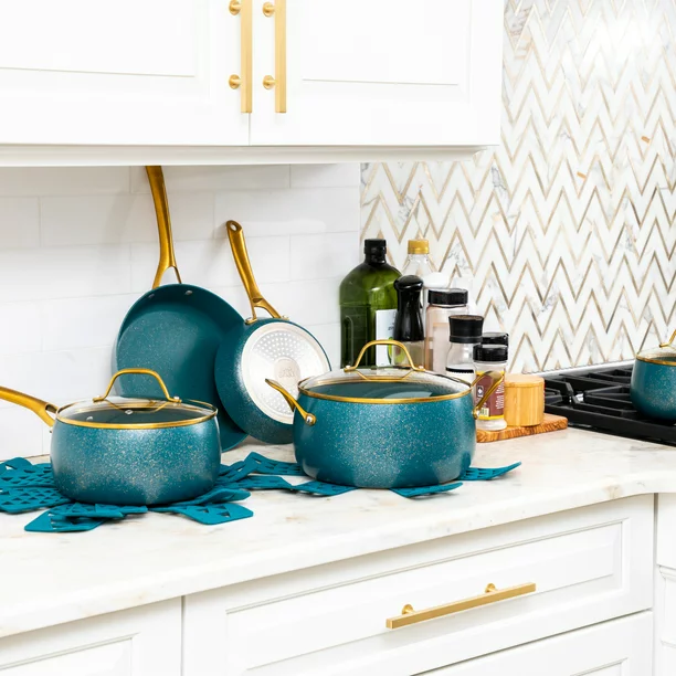 Gotham Steel Hammered 10 Piece Hammered Cookware Set. Oven Safe. Dishwasher Safe - Elegant Pots & Pans
