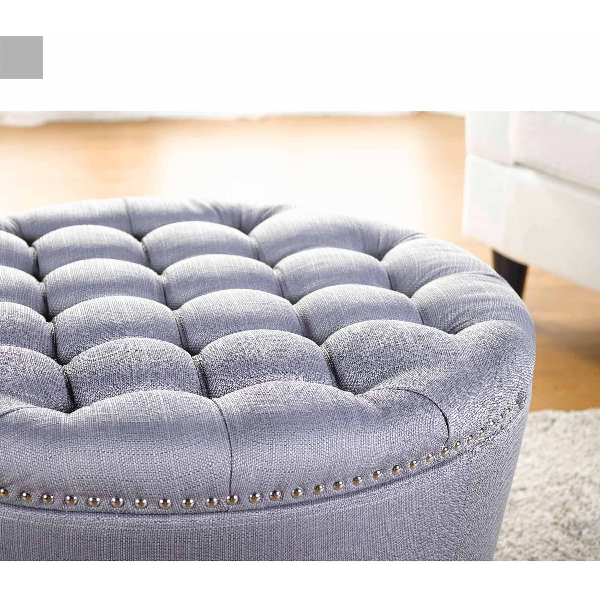 Better Homes & Gardens Round Tufted Storage Ottoman with Nailheads. Gray