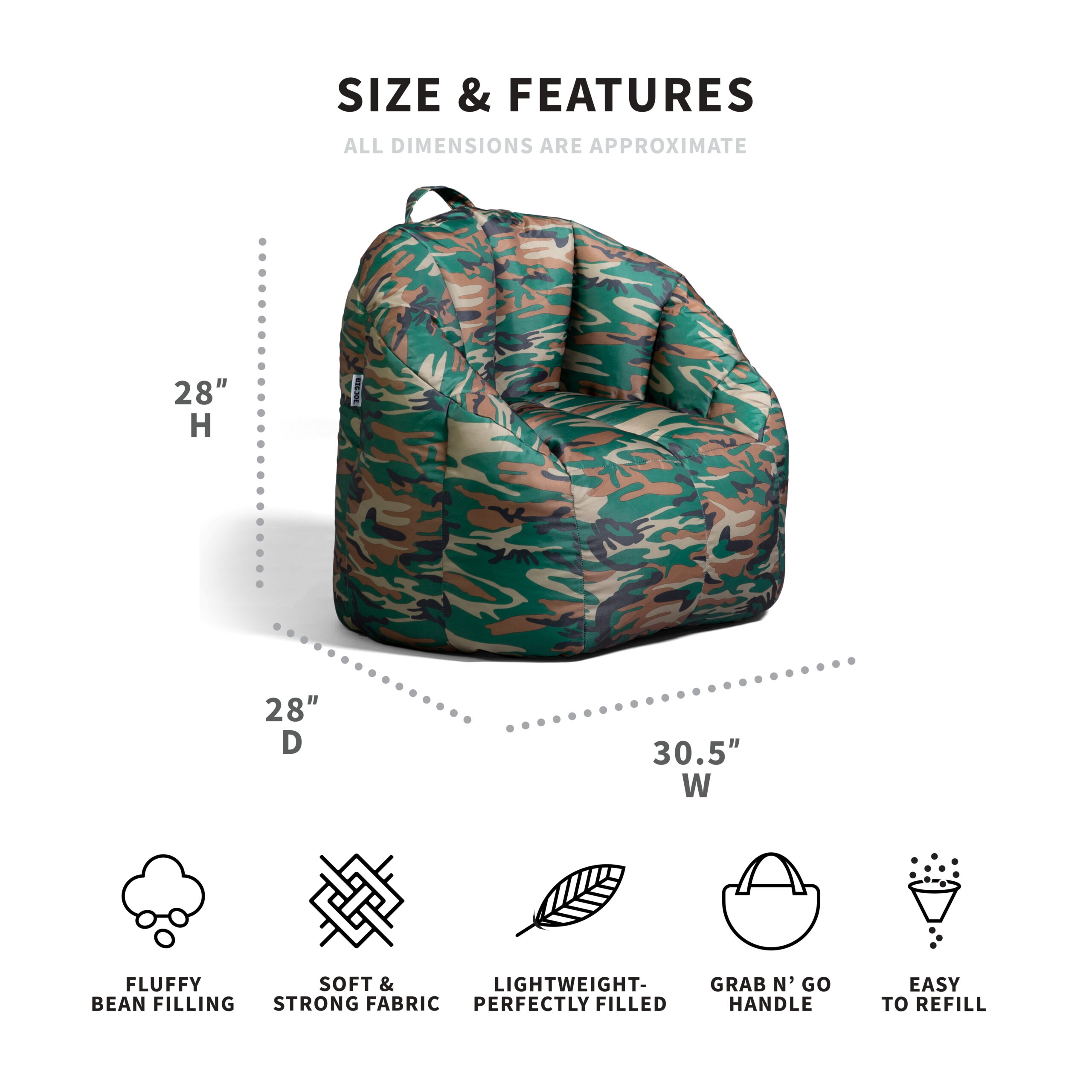 Big Joe Milano Bean Bag Chair. Smartmax. 2.5ft. Woodland Green Camo