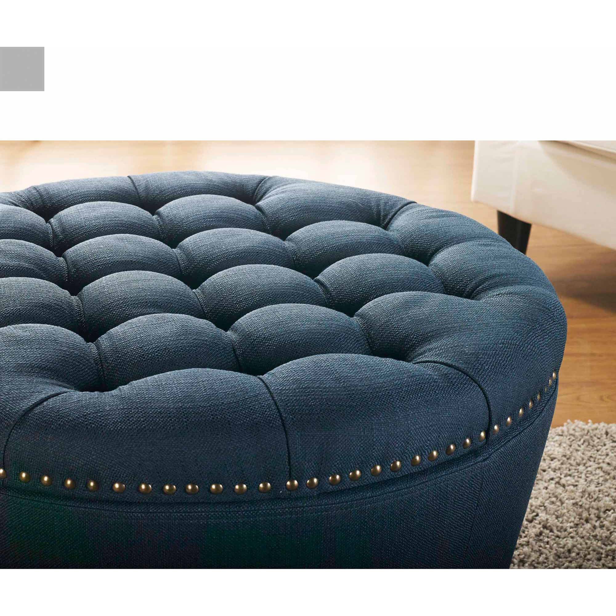 Better Homes & Gardens Round Tufted Storage Ottoman with Nailheads. Navy
