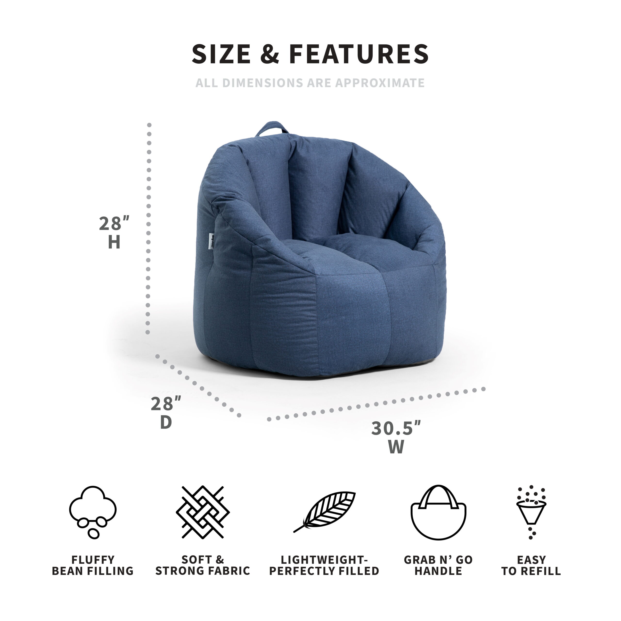 Big Joe Milano Bean Bag Chair. Lenox 2.5ft. Cobalt