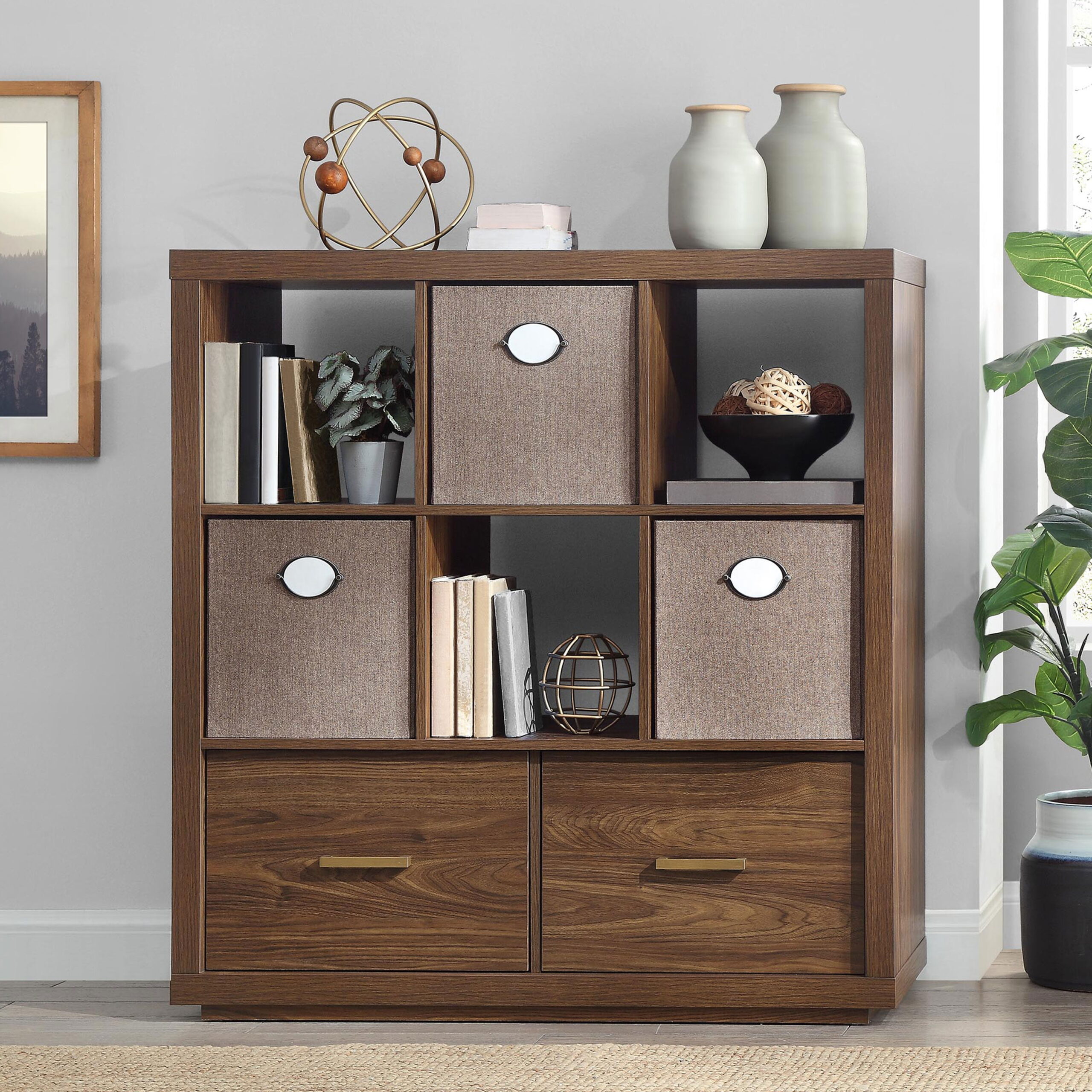 Better Homes & Gardens Steele 6 Cube Storage Room Organizer with Drawers. Walnut Finish