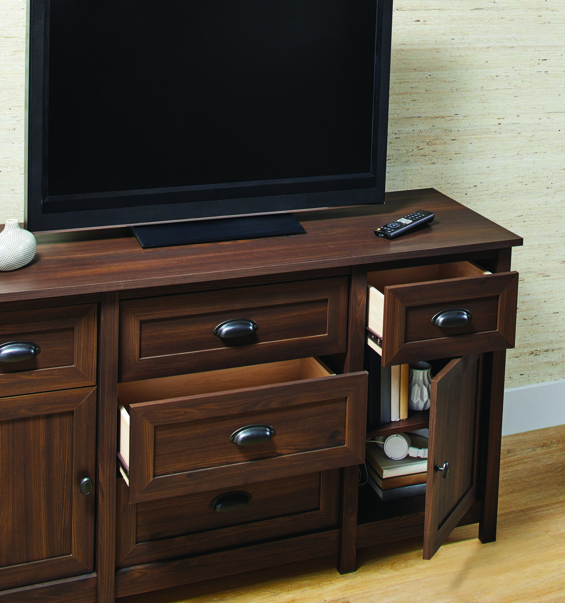 Better Homes & Gardens Lafayette TV Stand. for TVs up to 50″. English Walnut Finish