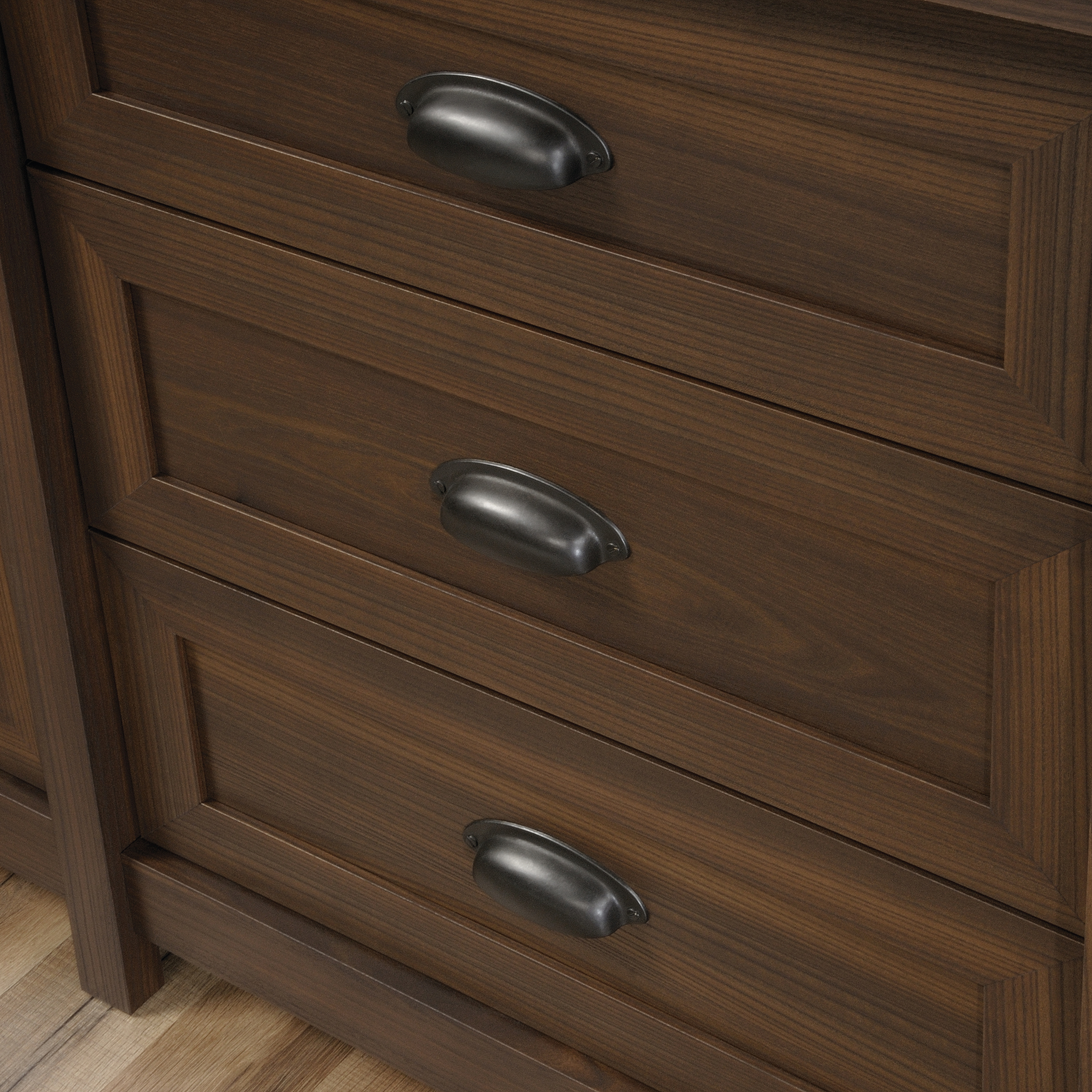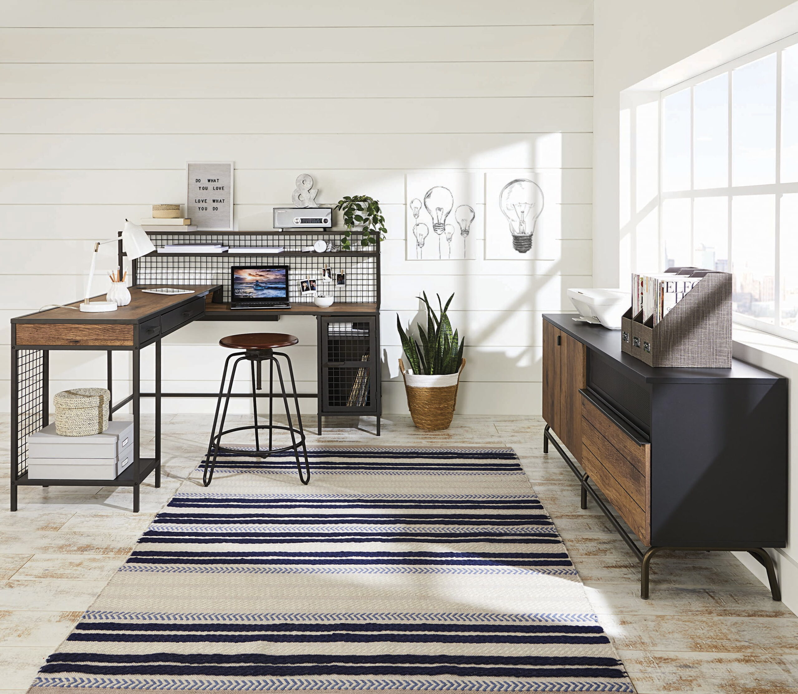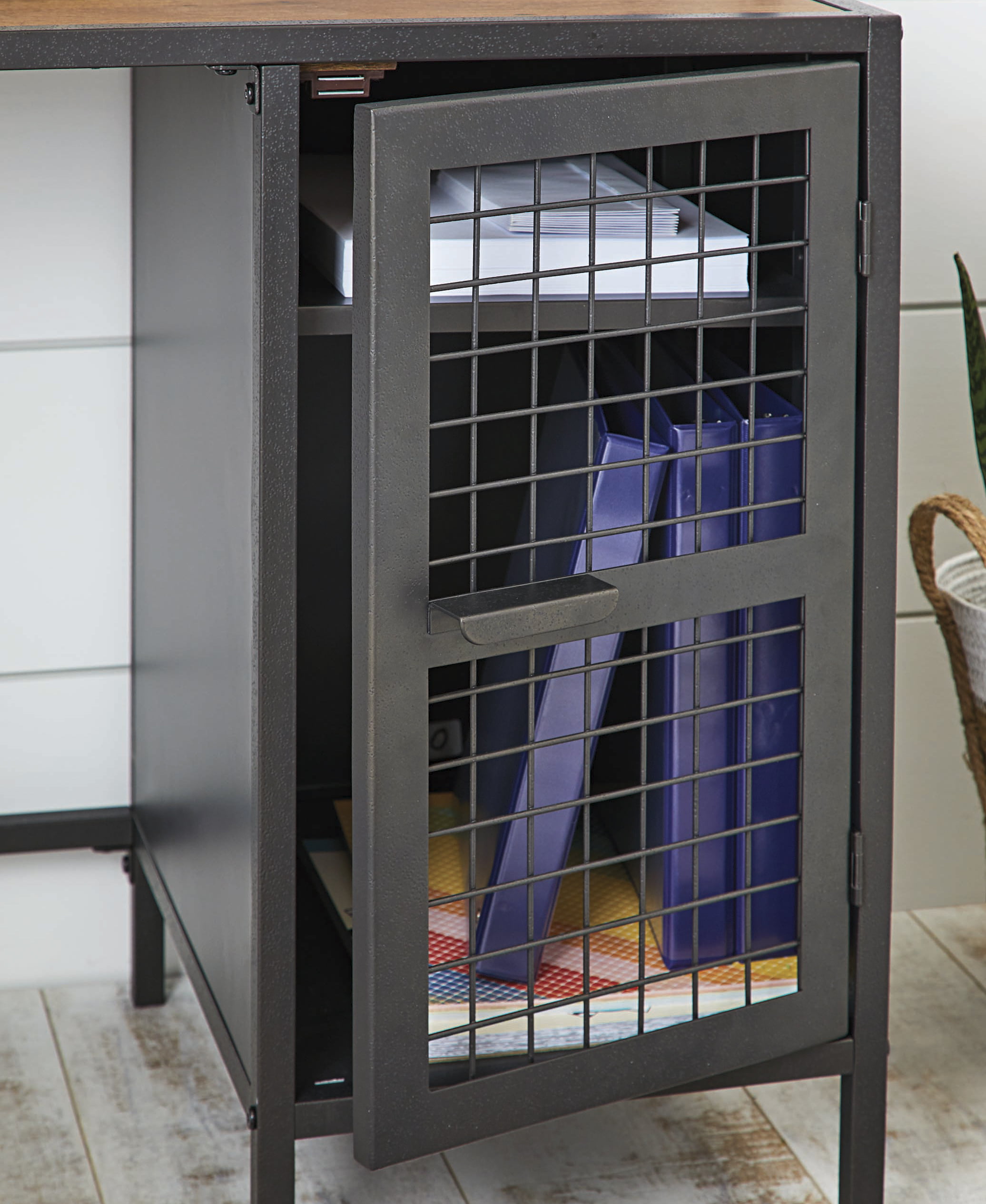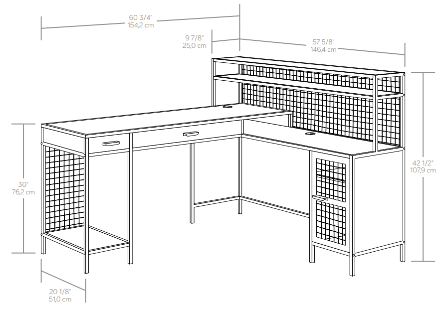 Better Homes & Gardens Lindon Place L-Shaped Desk with Cage. Vintage Oak Finish