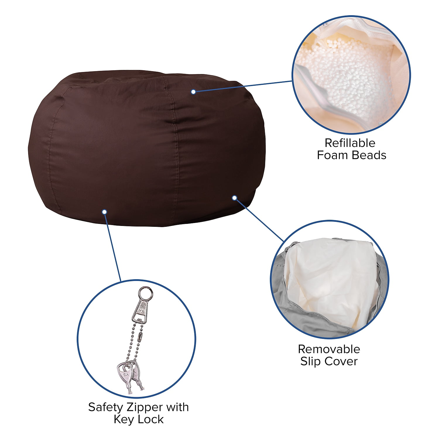 Flash Furniture Duncan Oversized Solid Brown Refillable Bean Bag Chair for All Ages
