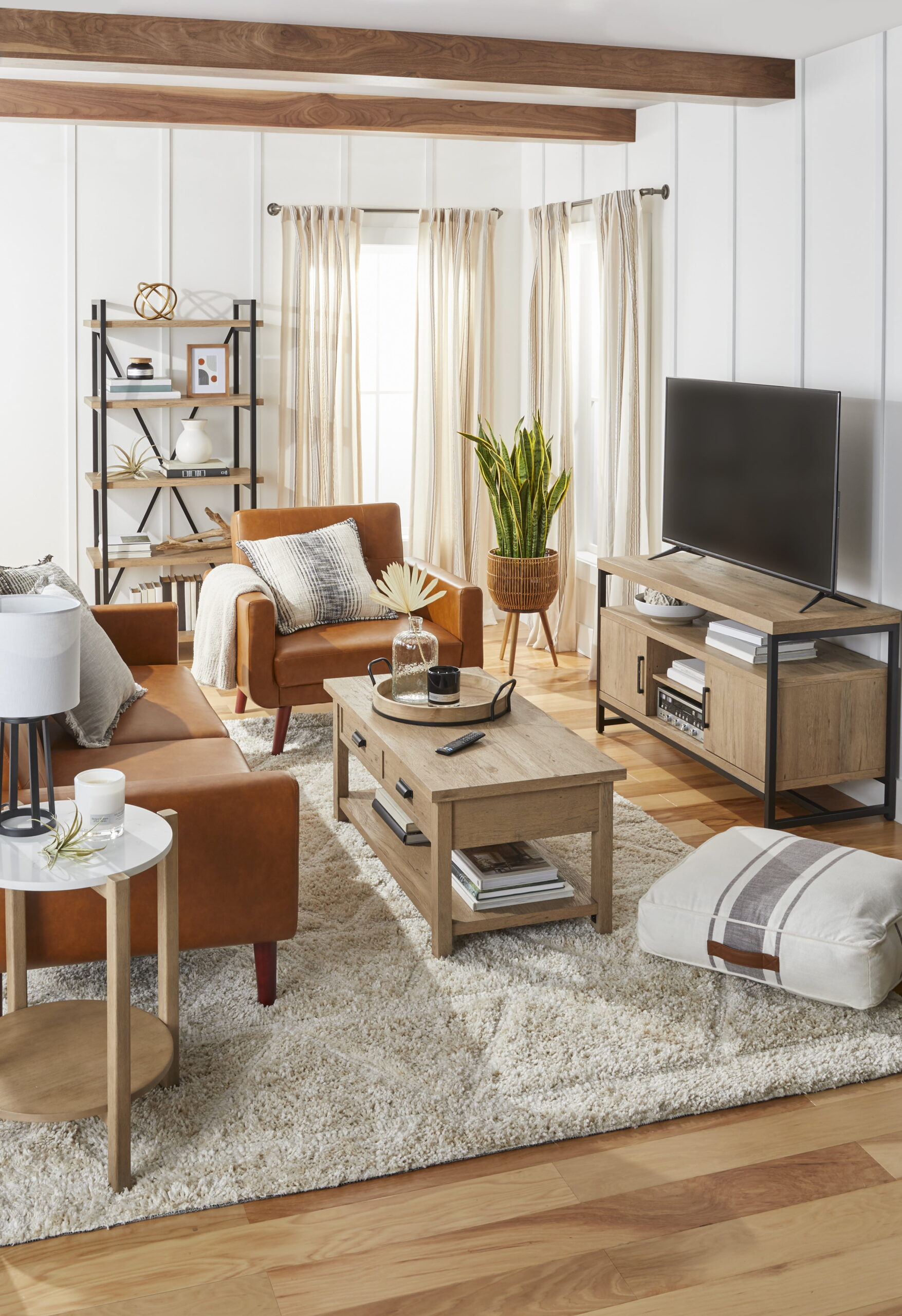Better Homes & Gardens Jace Industrial Wood Rectangle Media Console for TVs up to 55 in. Natural Oak