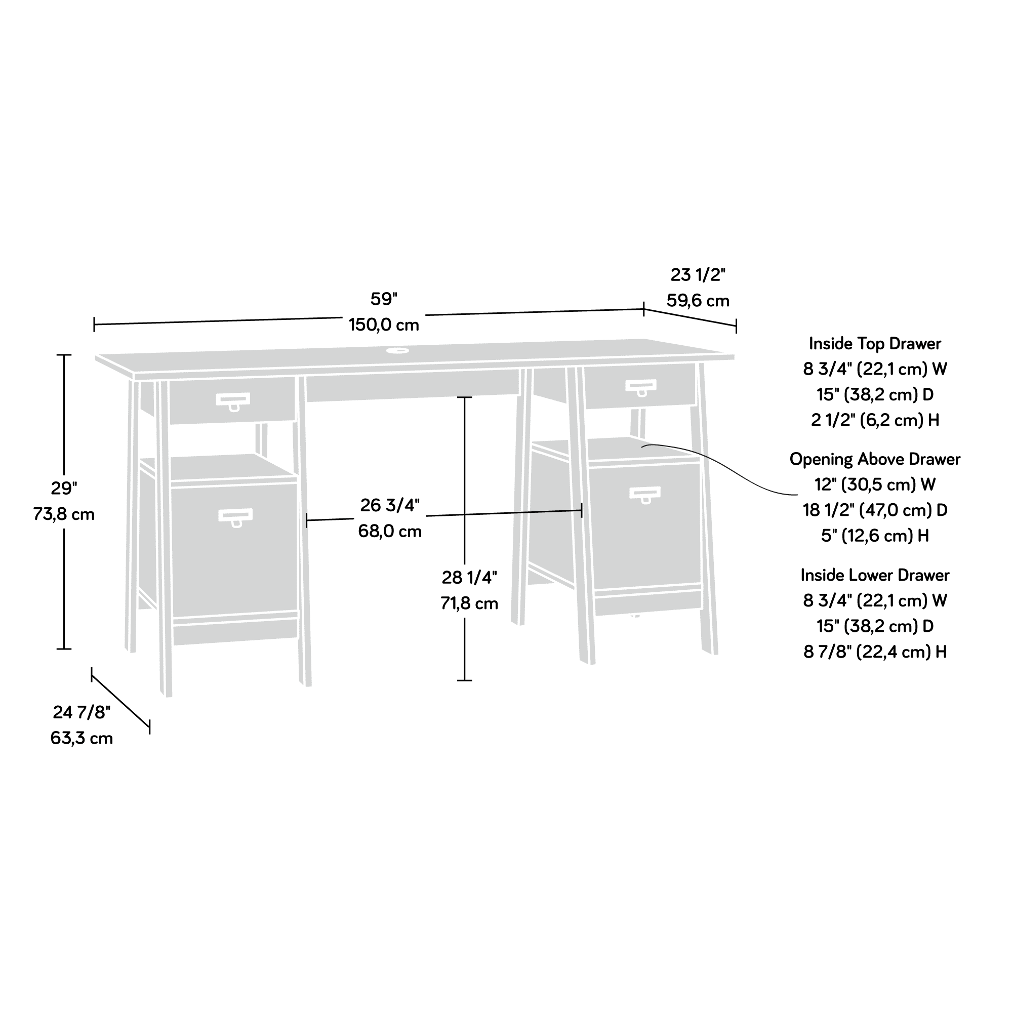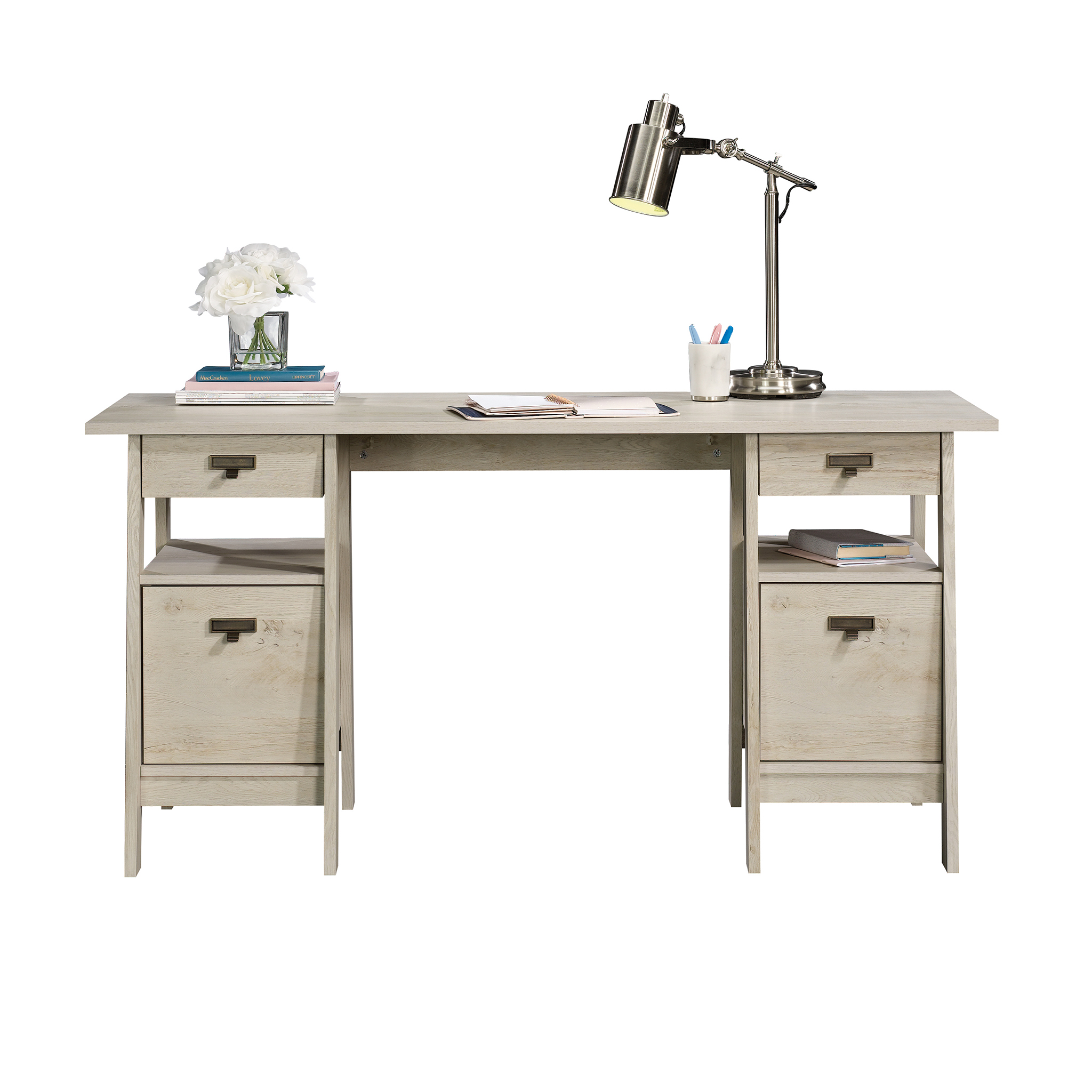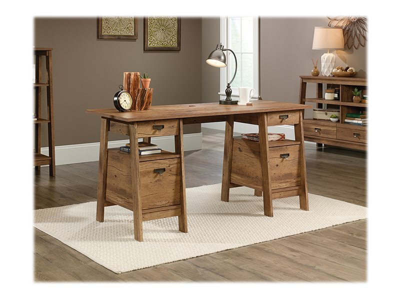 Sauder Trestle Executive Desk. Chalked Chestnut Finish