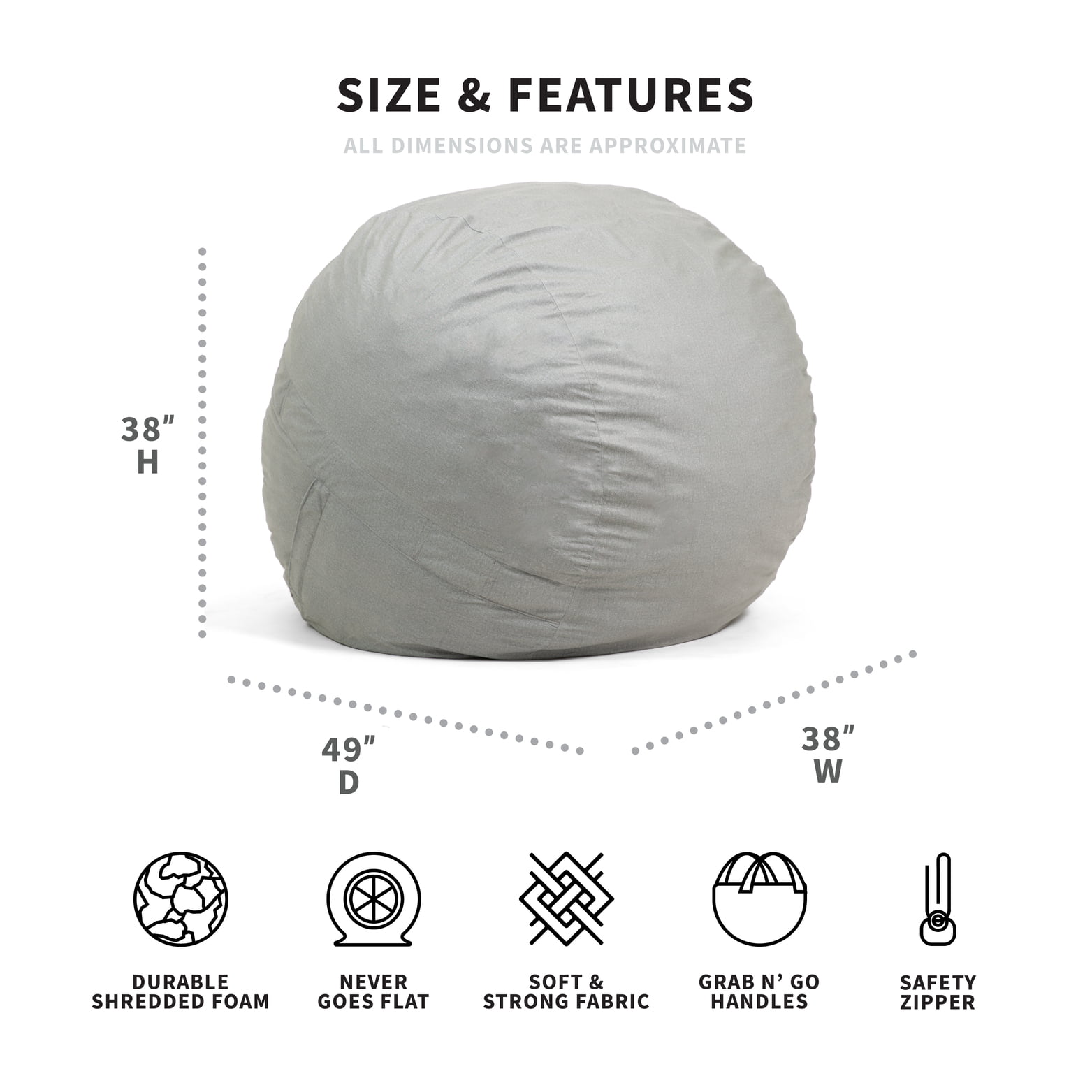 Big Joe Fuf Large Bean Bag Chair. Lenox 4ft. Fog