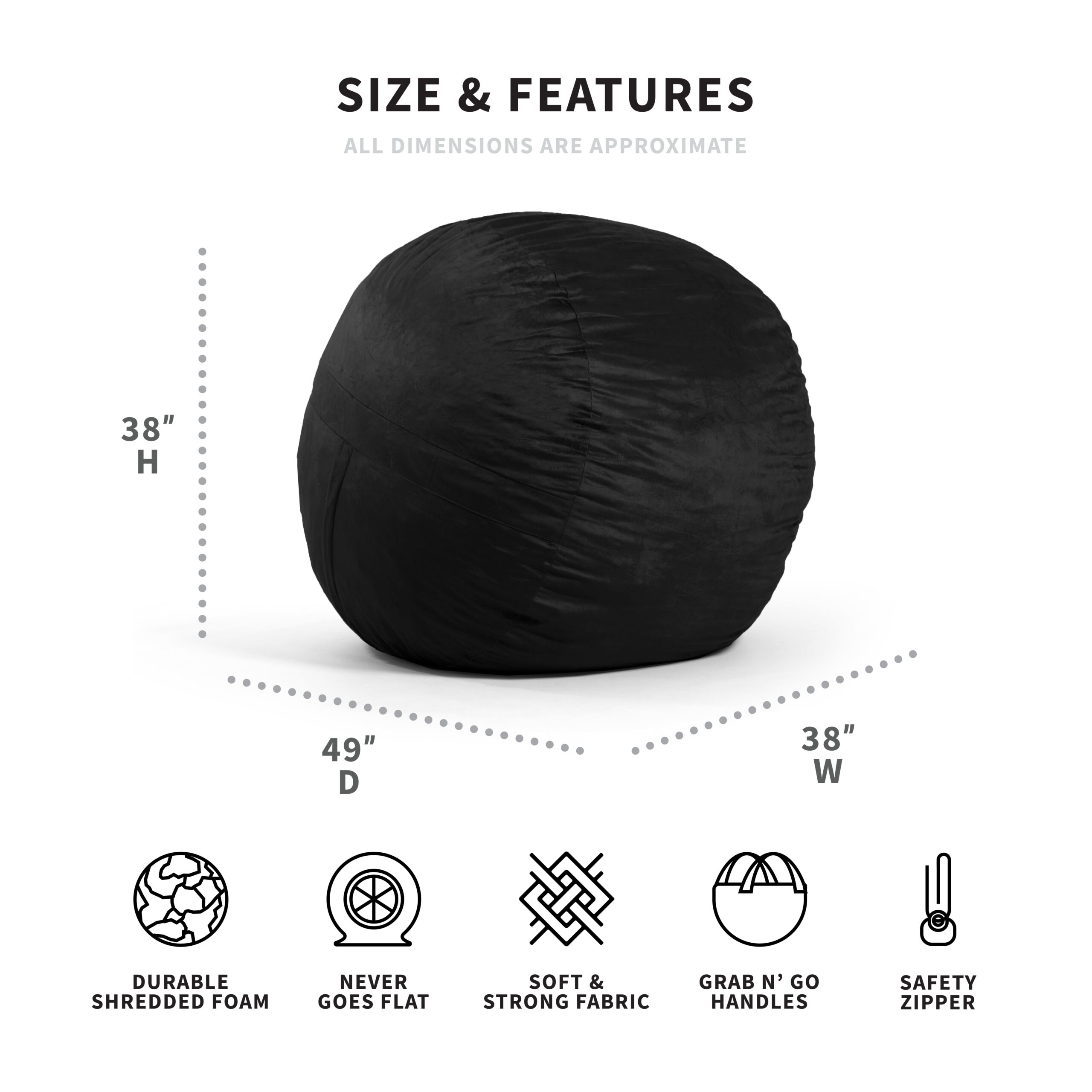 Big Joe Fuf Large Bean Bag Chair. Plush 4ft. Black