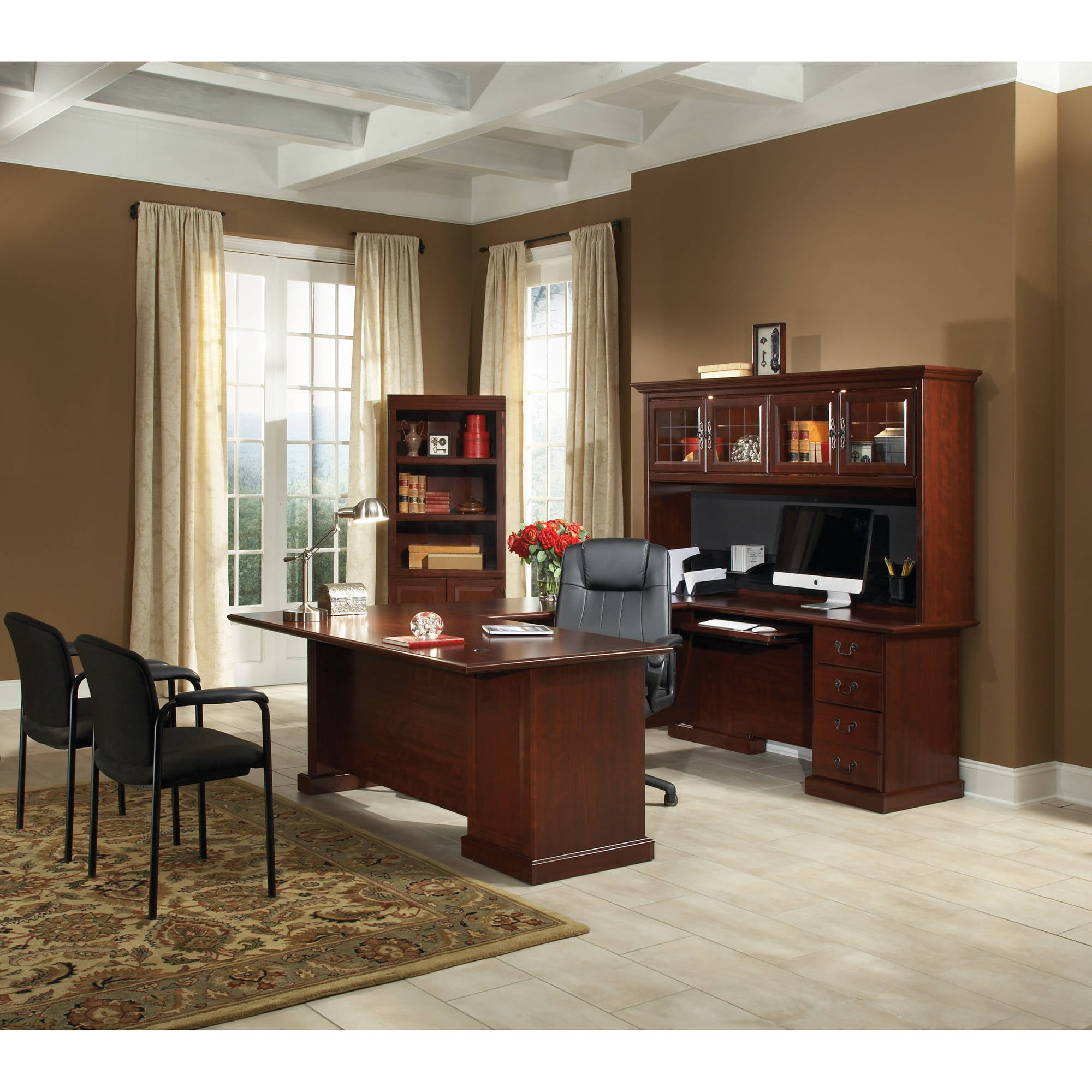 Sauder Palladia Library Bookcase with Doors. Select Cherry Finish