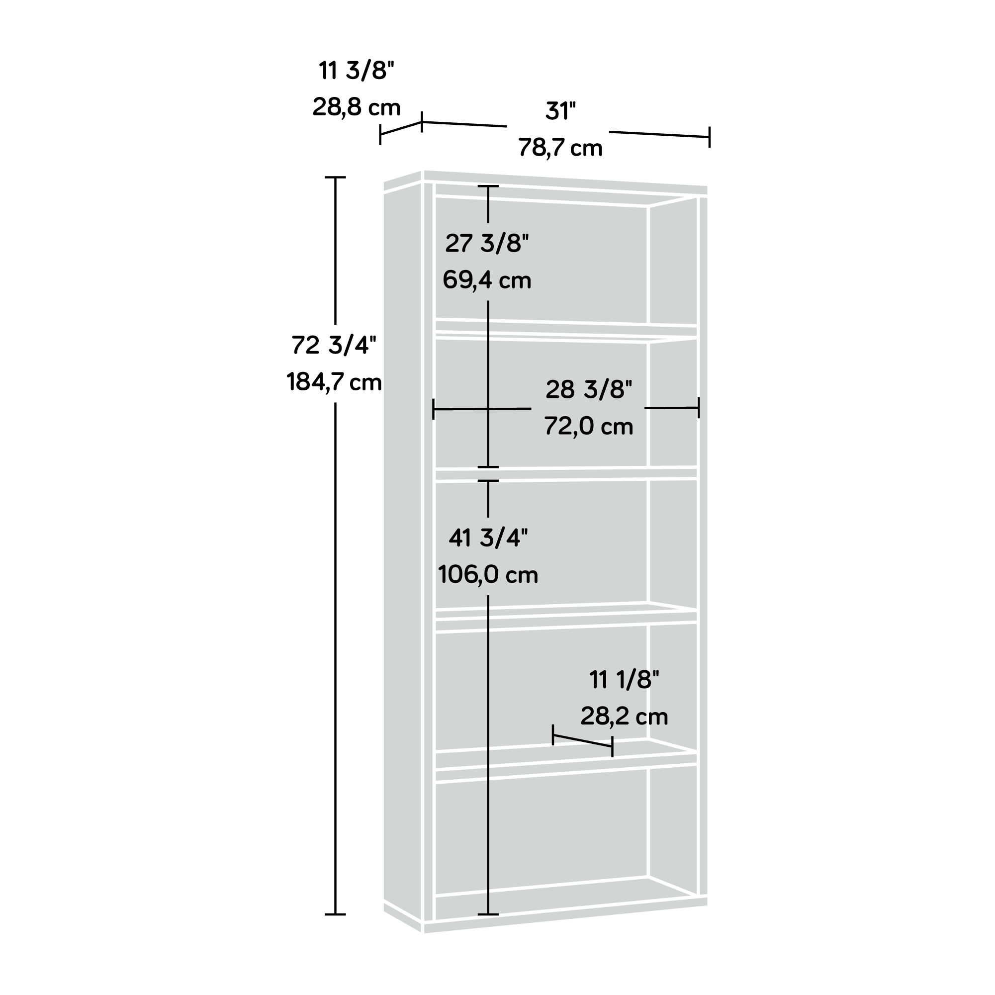 Sauder 5-Shelf Wood Bookcase. Sindoori Mango Finish