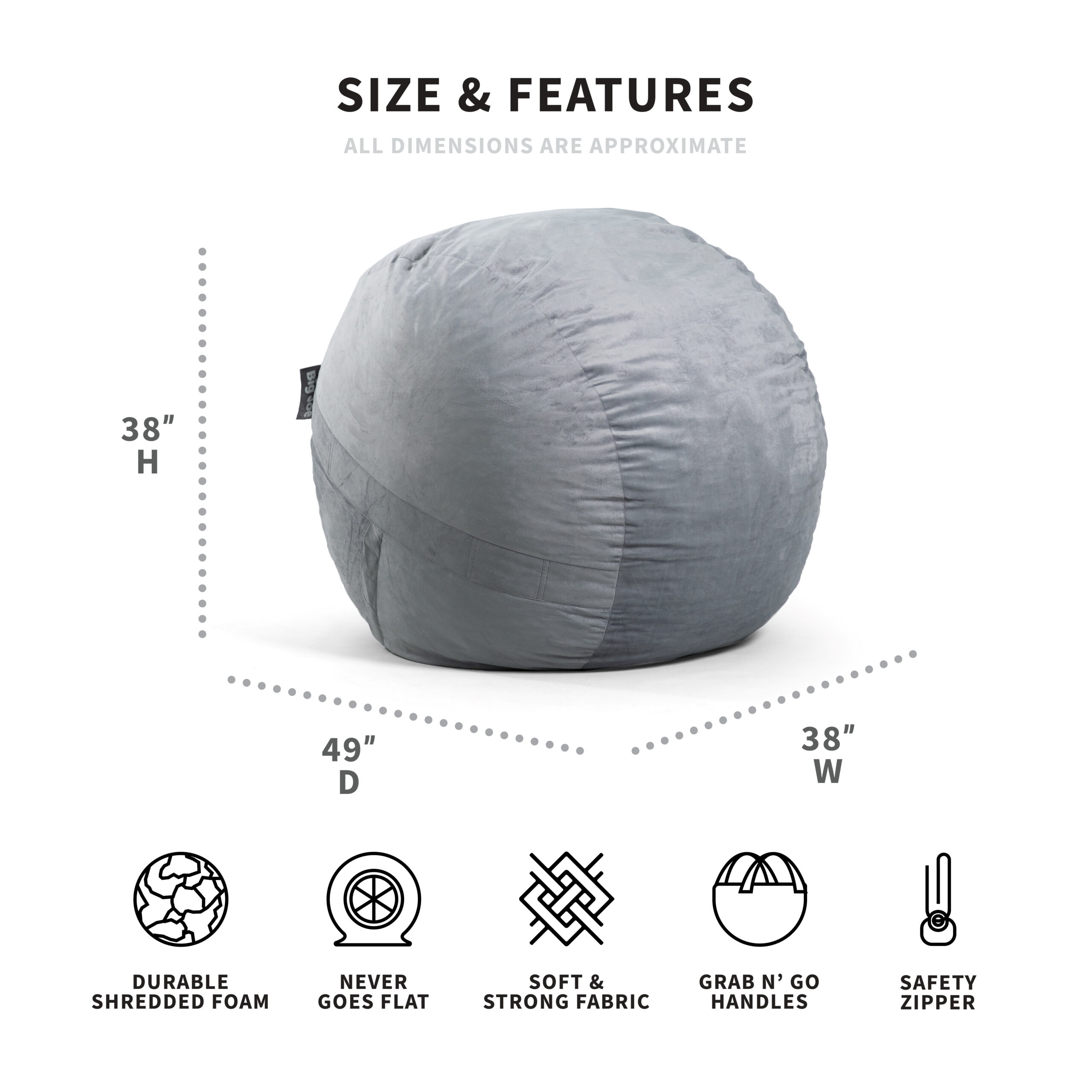 Big Joe Fuf Large Bean Bag Chair. Plush 4ft. Gray