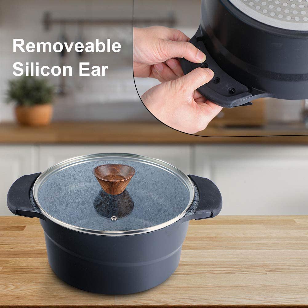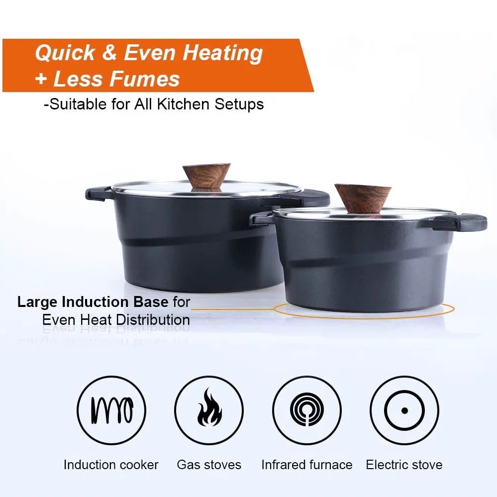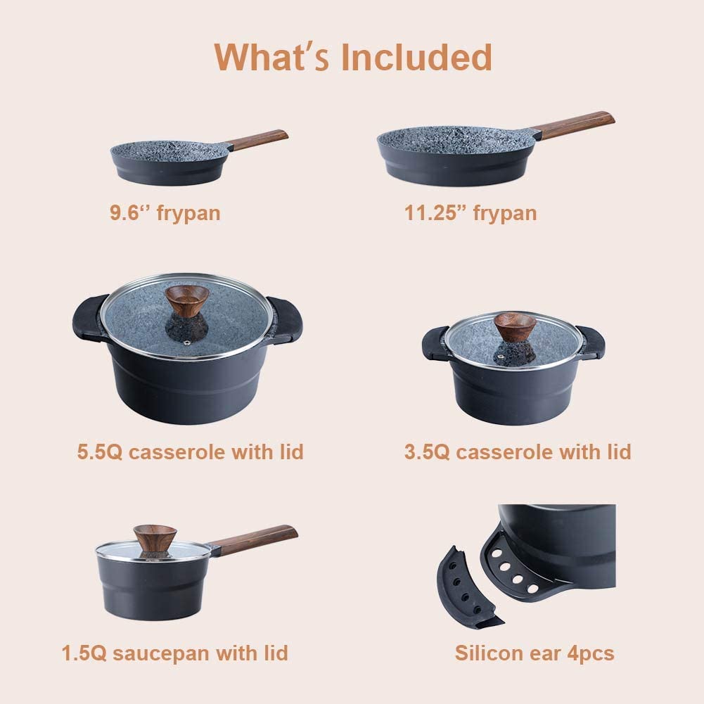 MF Studio Professional Nonstick Cookware Dishwasher Safe Black Granite Pots and Pans Set