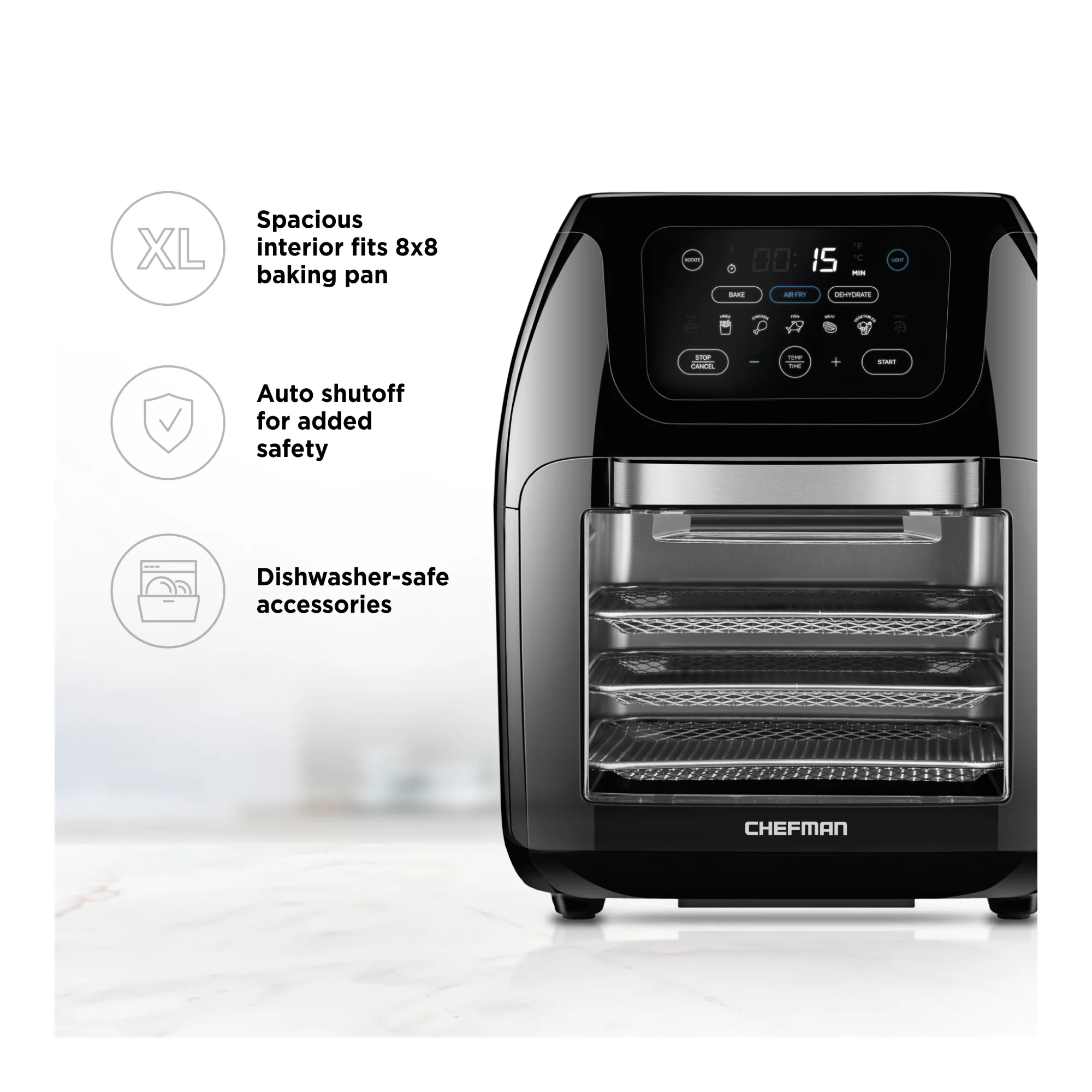 Chefman Digital Air Fryer + Rotisserie. Dehydrator. Oven. Black. 10 Liters