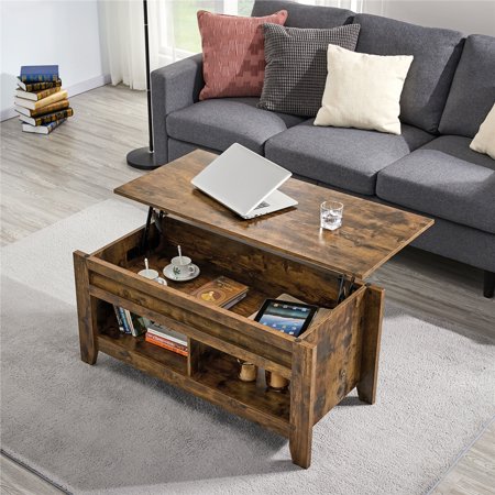 Yaheetech Lift Top Coffee Table w/Hidden Storage Compartment Open Shelf for Living Room.Rustic Brown
