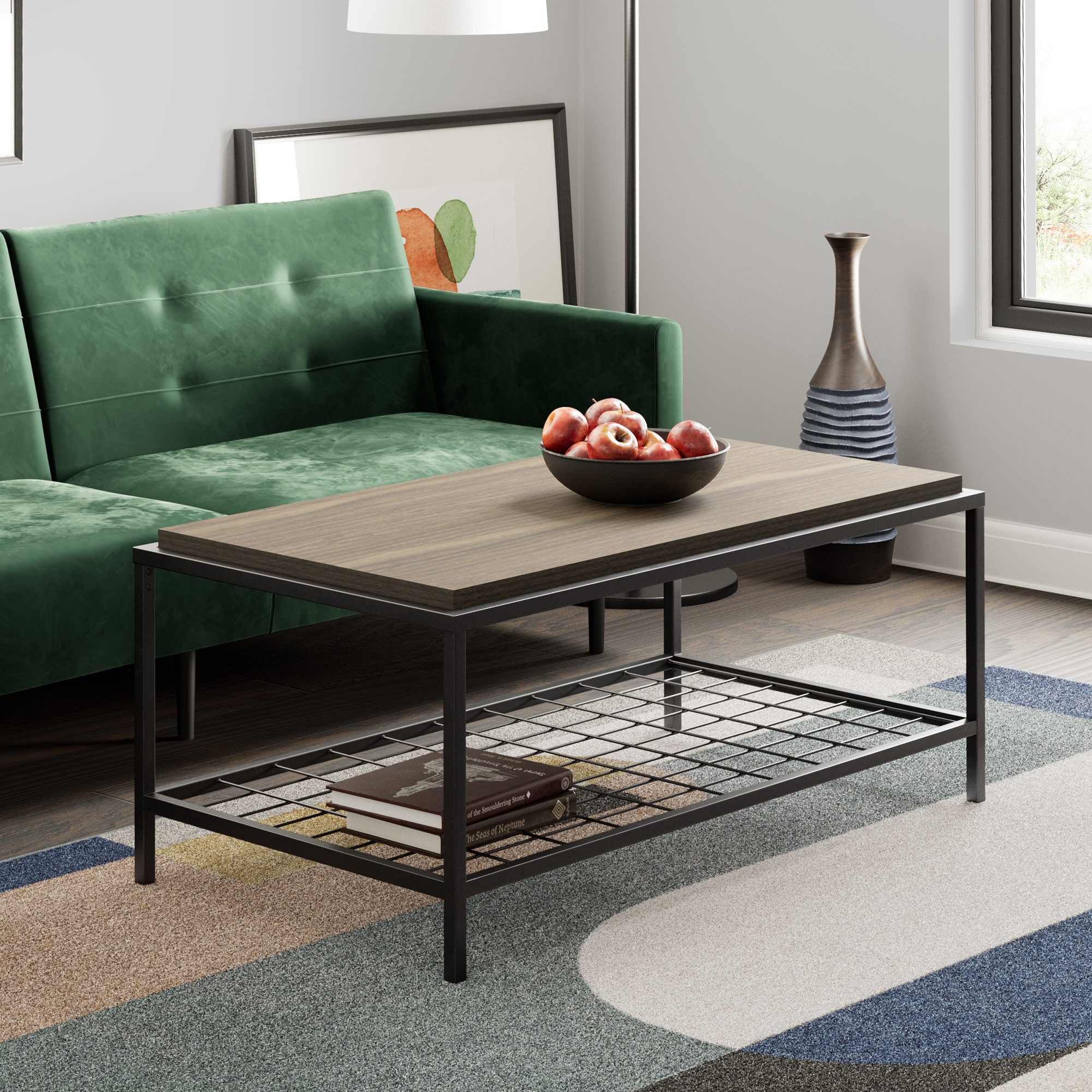 Mayview Collis Industrial Rectangle Wood and Metal Coffee Table. Ash