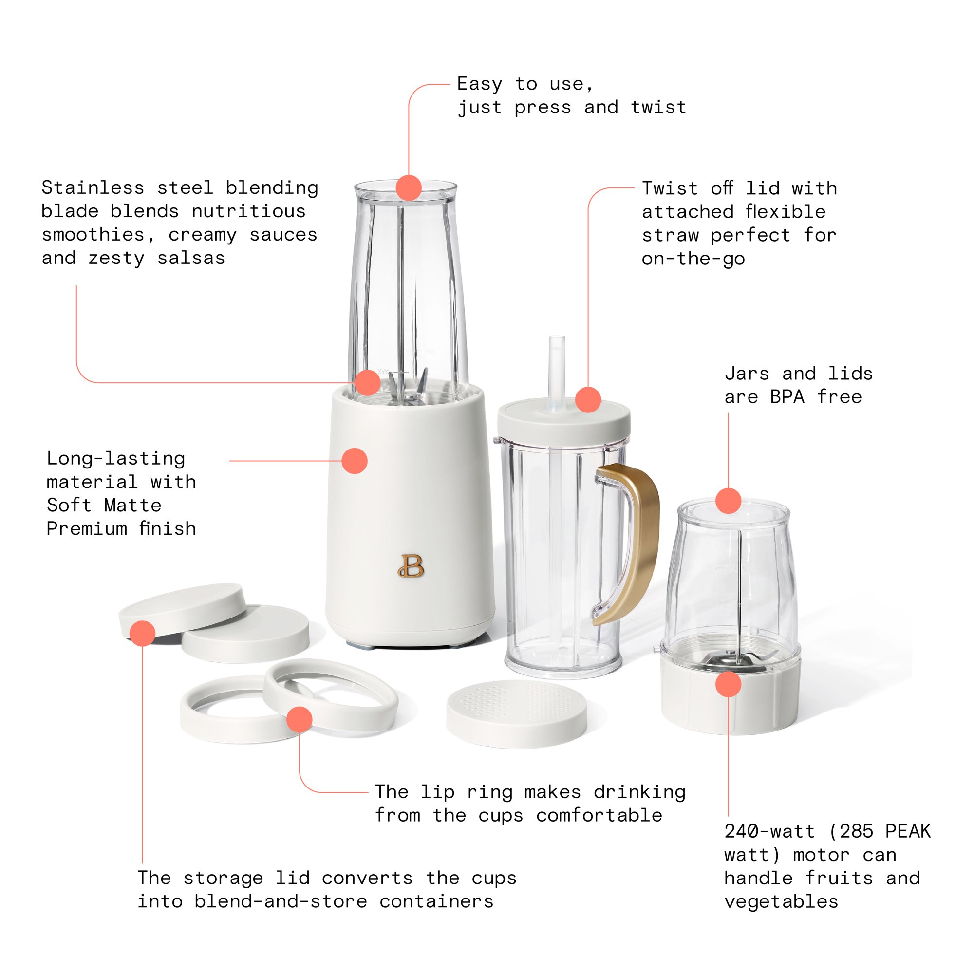 Beautiful Personal Blender. 12 Piece Set. White Icing