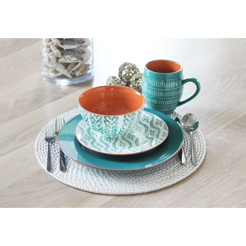 BAUM Essex - Dinnerware Sets. 16 Piece Dish Set for 4. Beautiful Home Decor includes Dinner Plates. Salad Plates. Bowls. and Mugs (Sahara Turquoise) (TTANGT16)