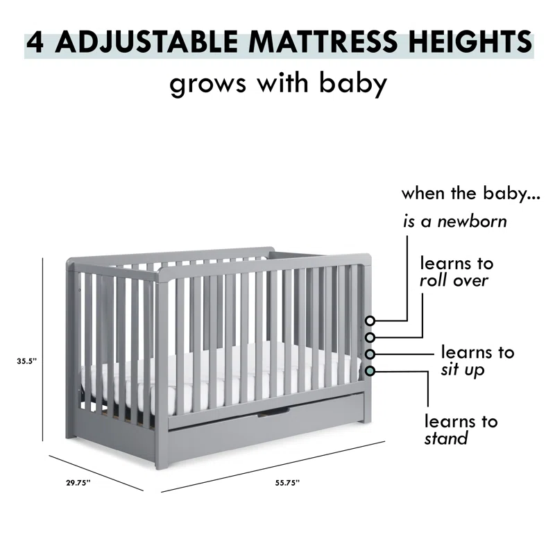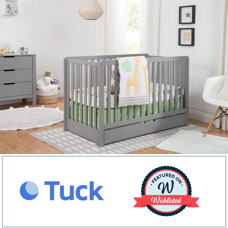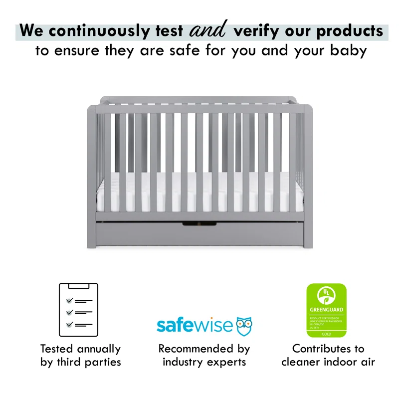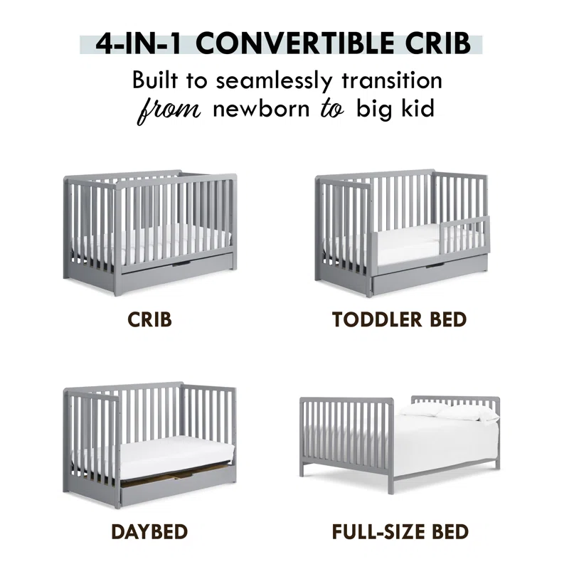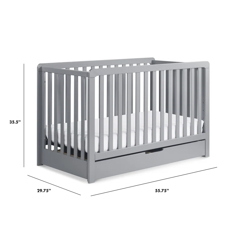 Carter-s by DaVinci Colby 4-in-1 Convertible Crib with Trundle Drawer in Grey. Greenguard Gold Certified. Undercrib Storage