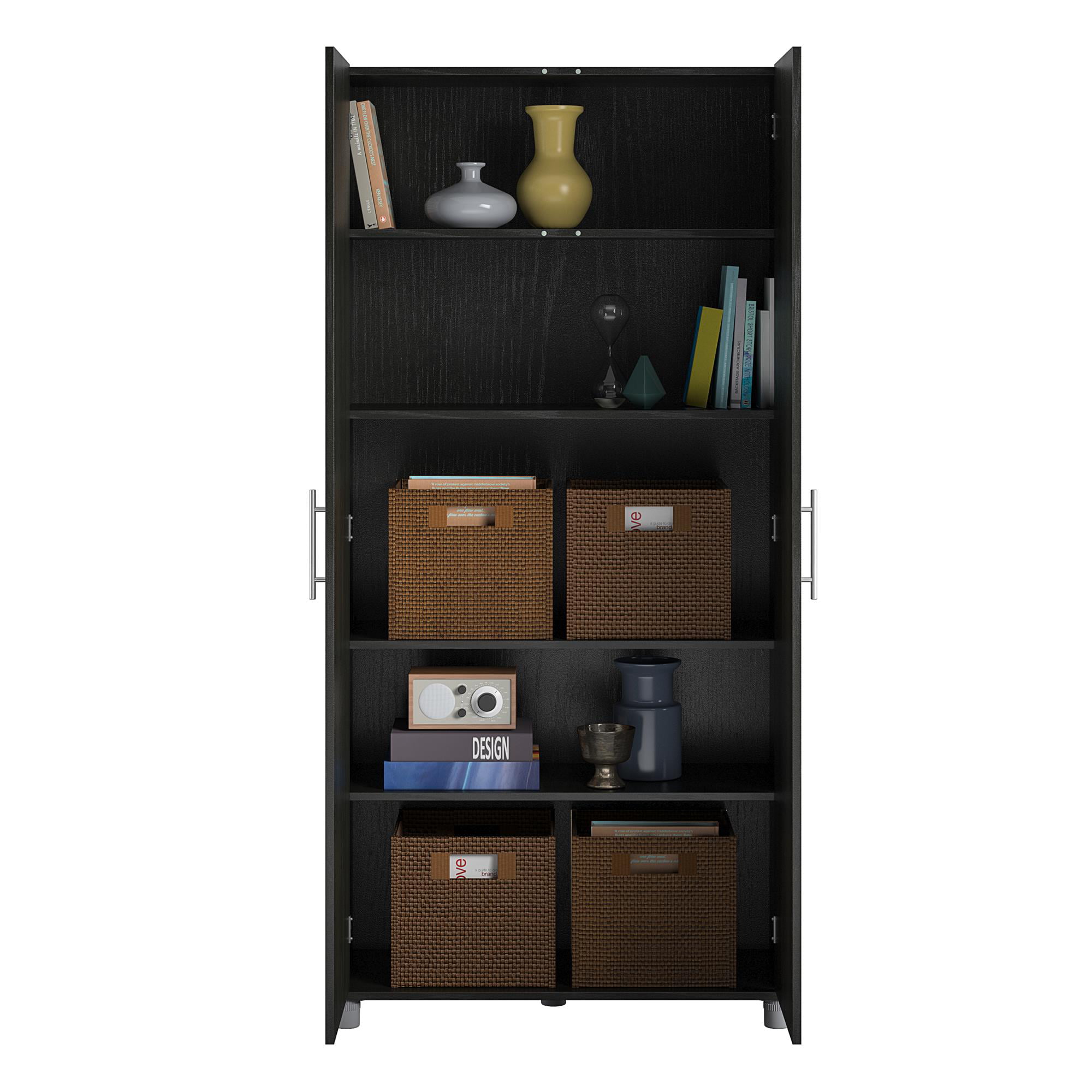 Systembuild Westford 4 Door/1 Drawer Storage Cabinet. Black Oak