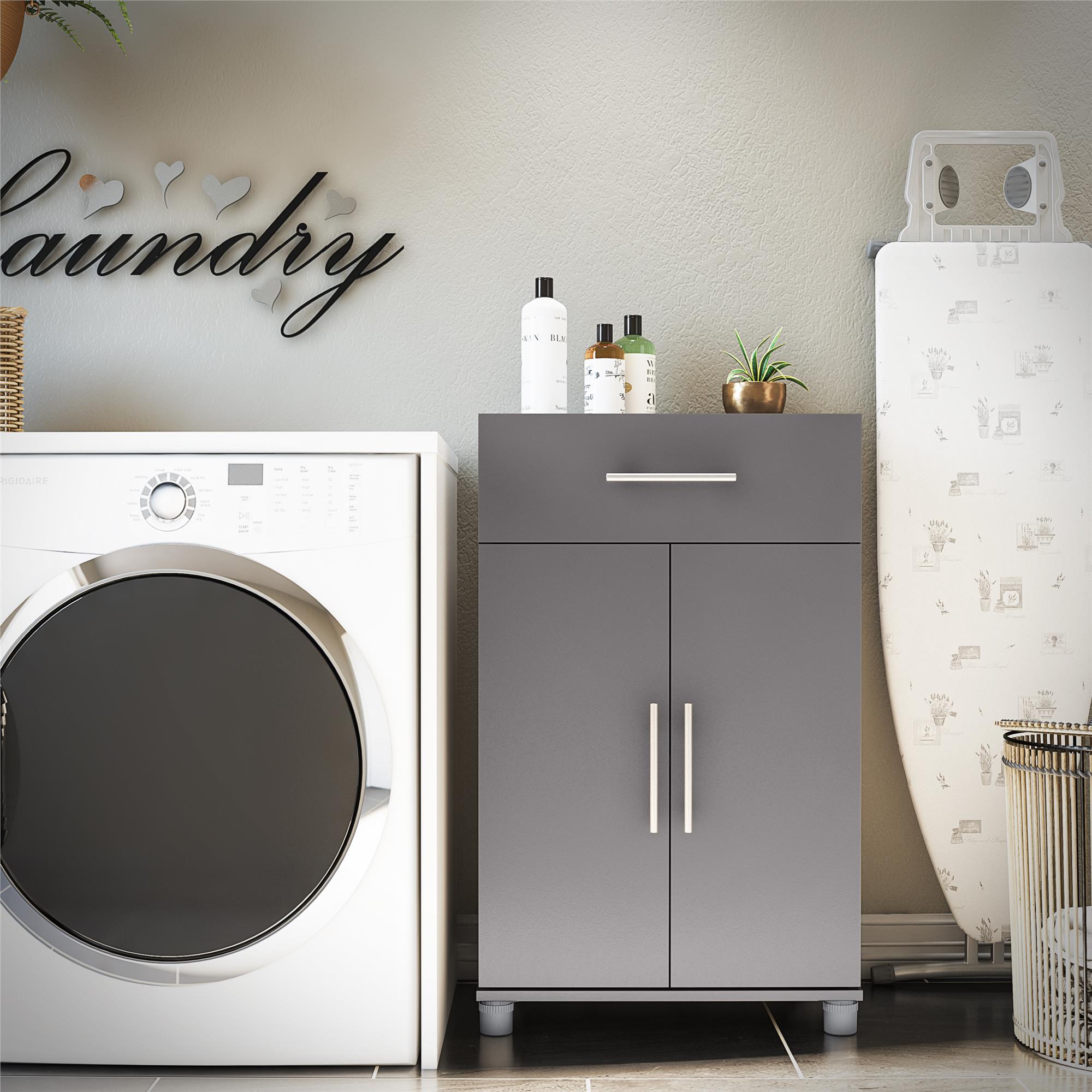 Prepac Elite 2-Door Freestanding Storage Cabinet. 16″ D x 32″ W x 65″ H. Drifted Gray