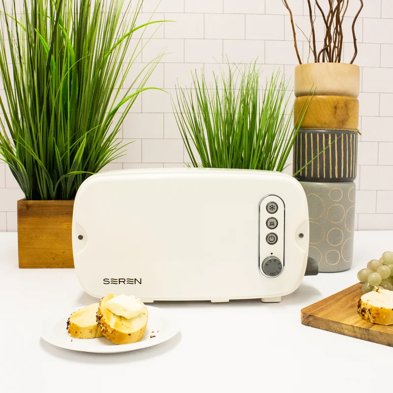 BergHOFF Seren Side Loading Toaster with Cool Touch Exterior and Removable Crumb Tray. White. Without Serving Tray