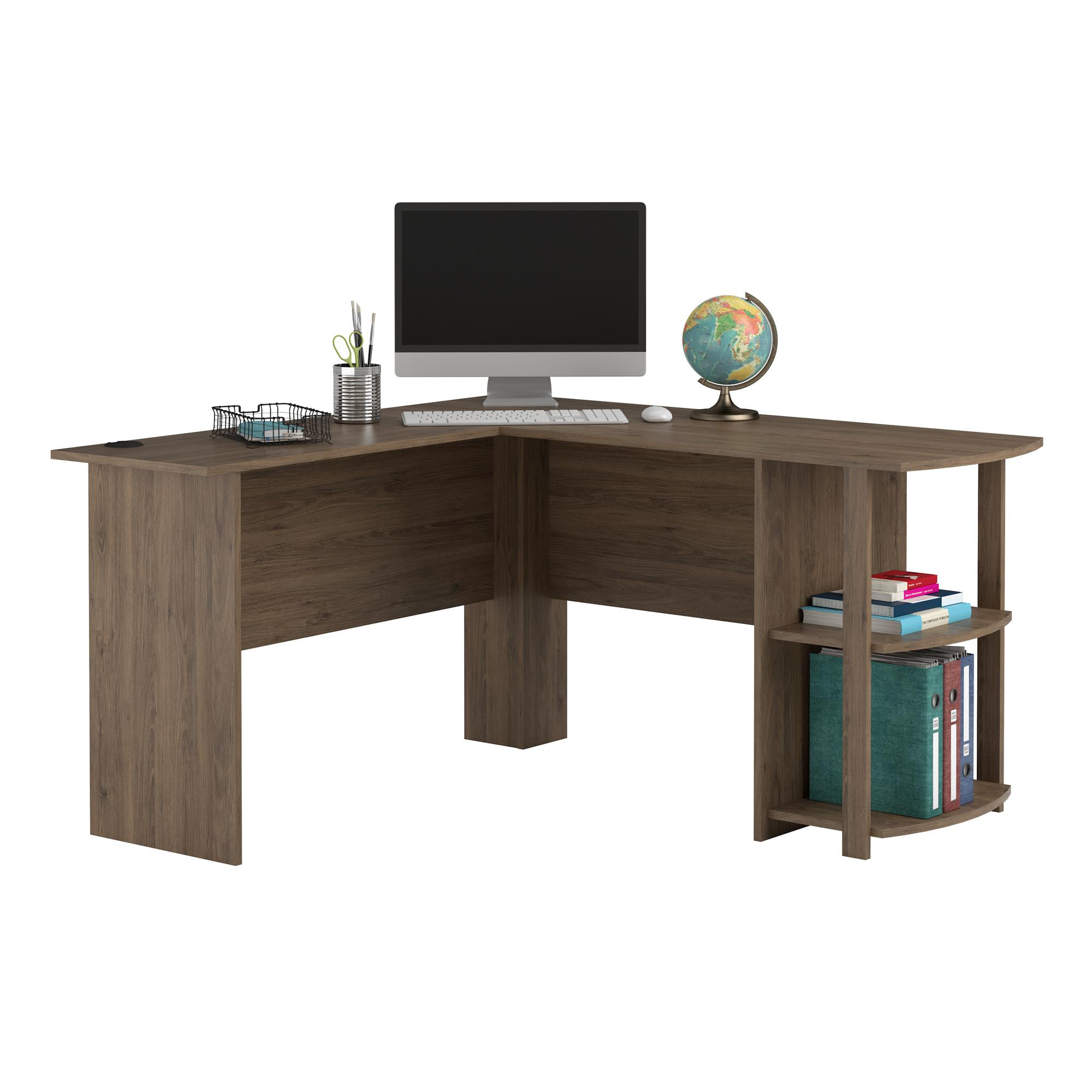 Ameriwood Home Dominic L Desk with Bookshelves. Rustic Oak