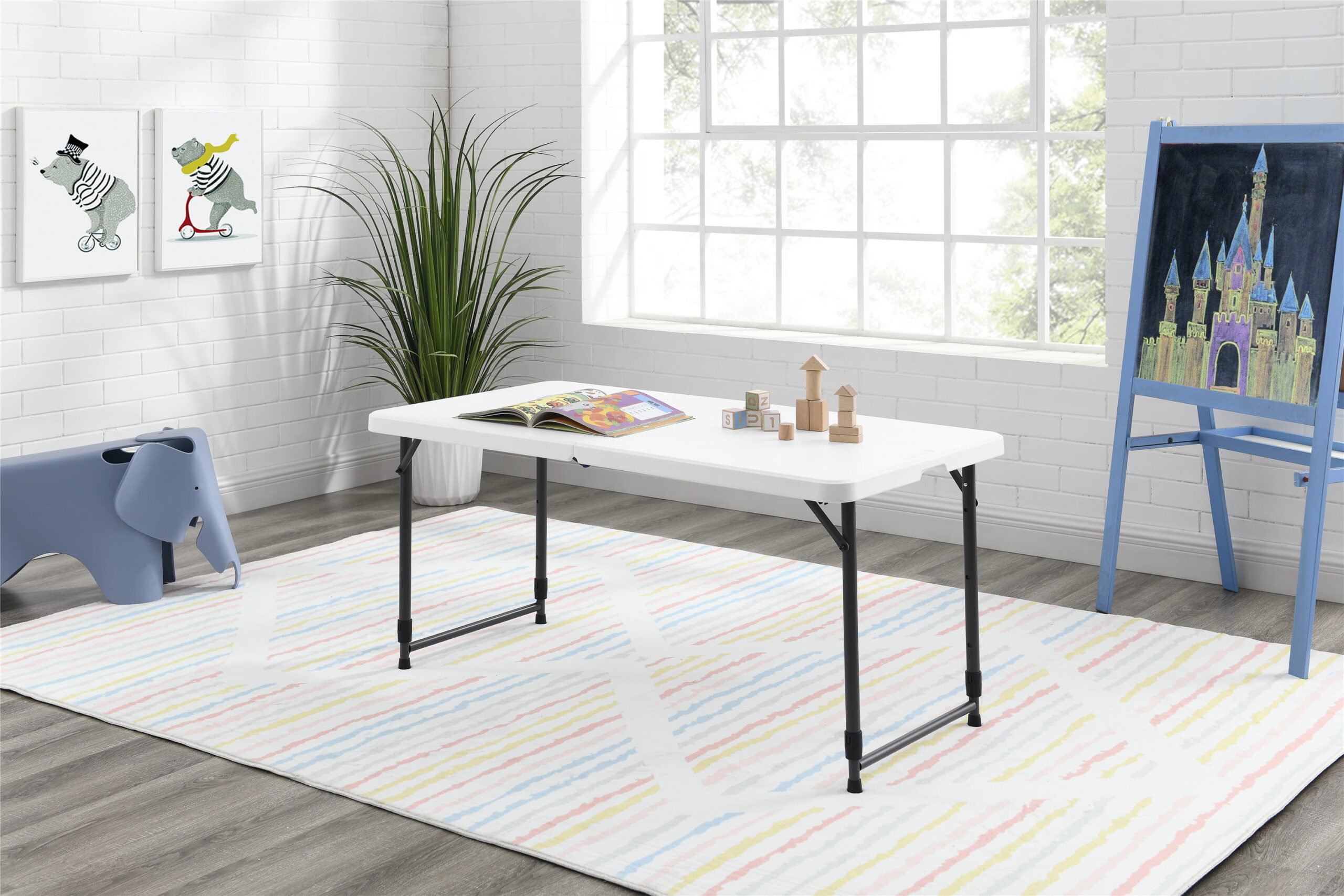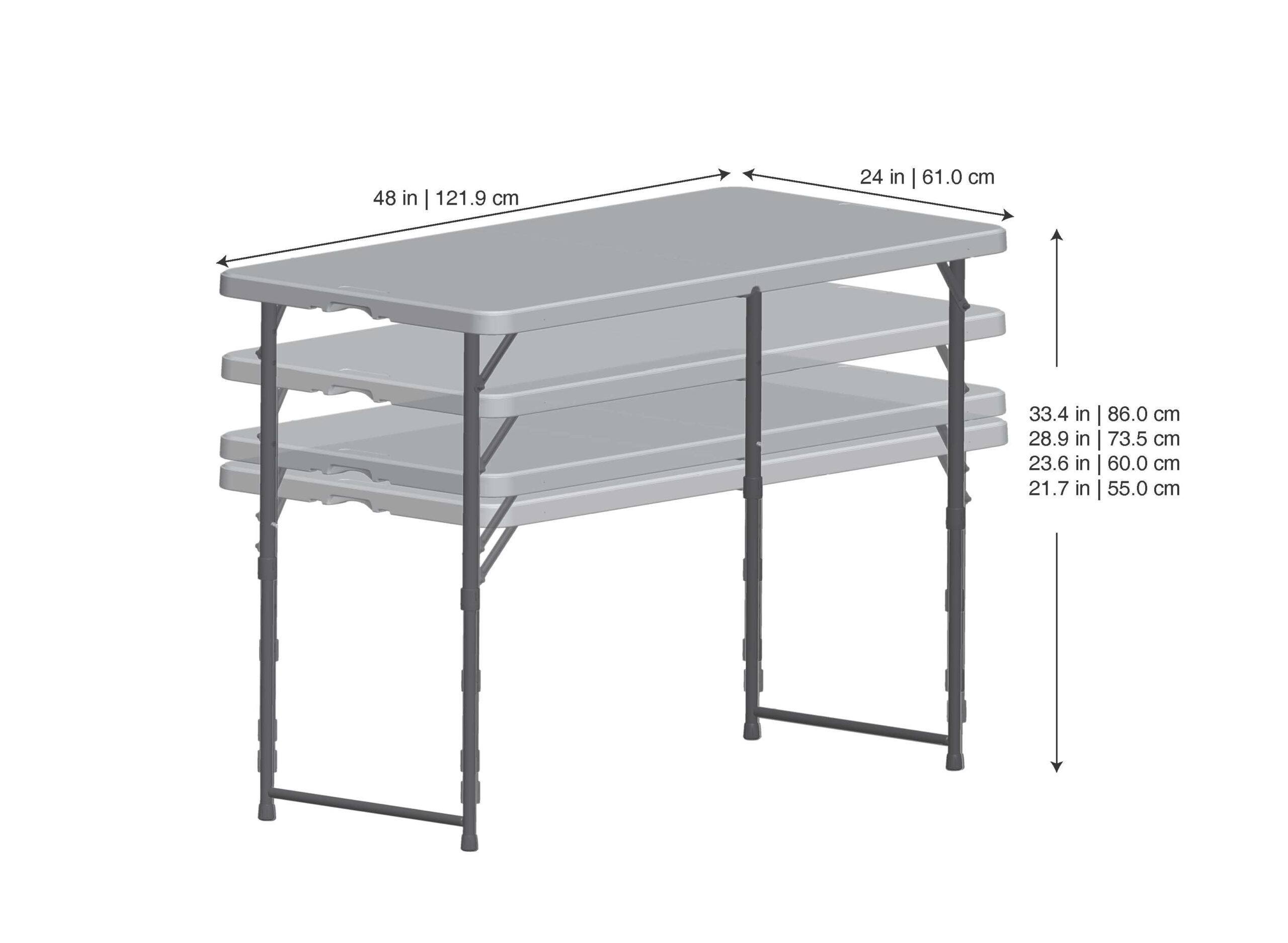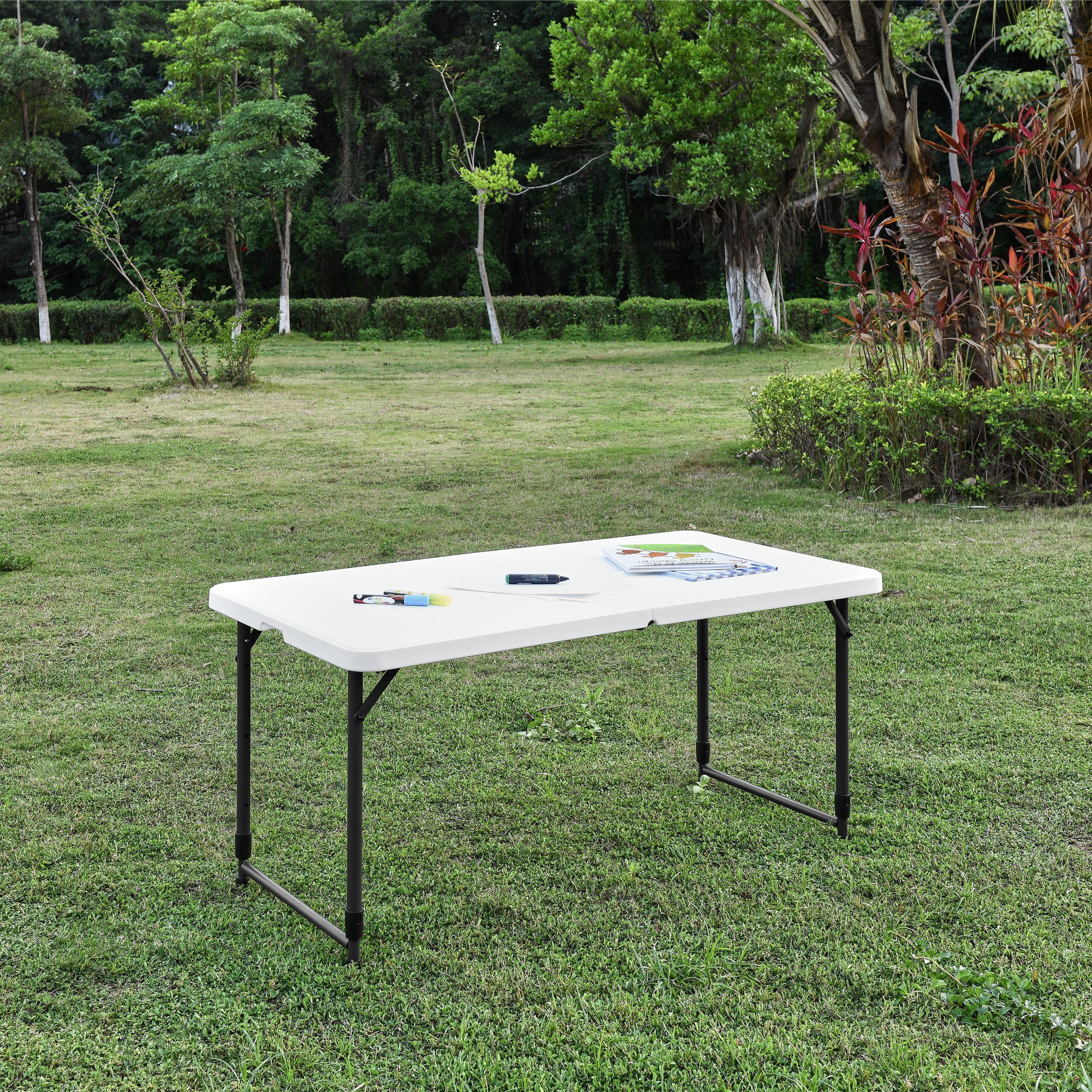 Mainstays 4 Foot Adjustable Height Folding Table. White Granite