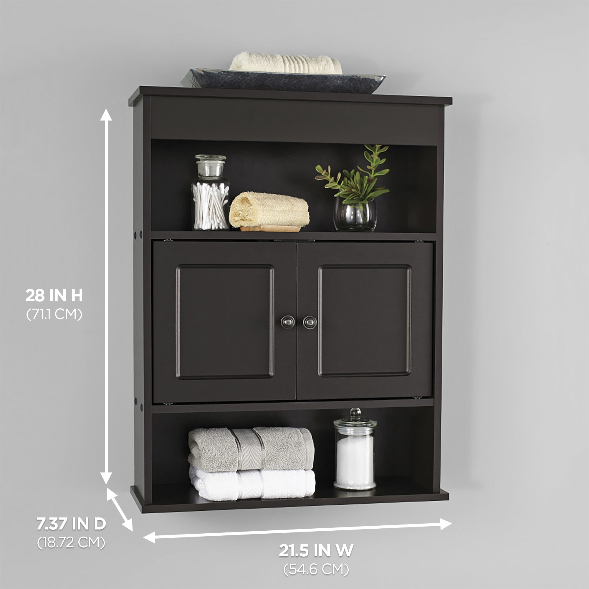 Mainstays Bathroom Wall Mounted Storage Cabinet with 2 Shelves. Espresso