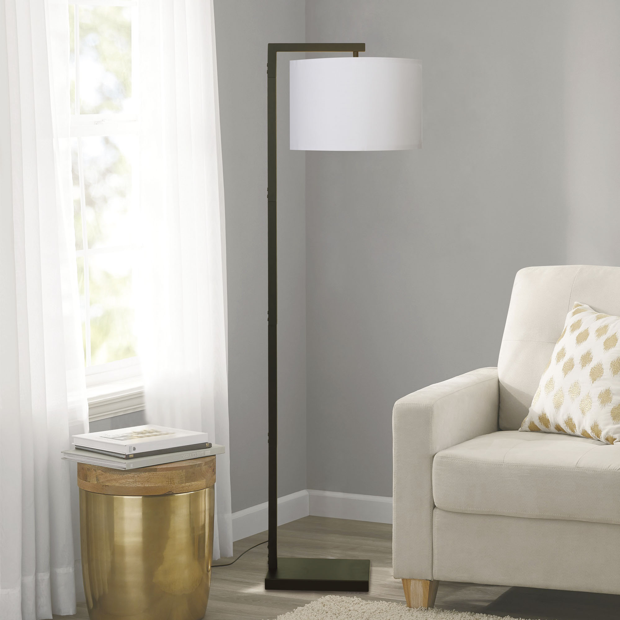 Mainstays Contemporary Metal 62in Floor Lamp with on/off Foot Switch. Black