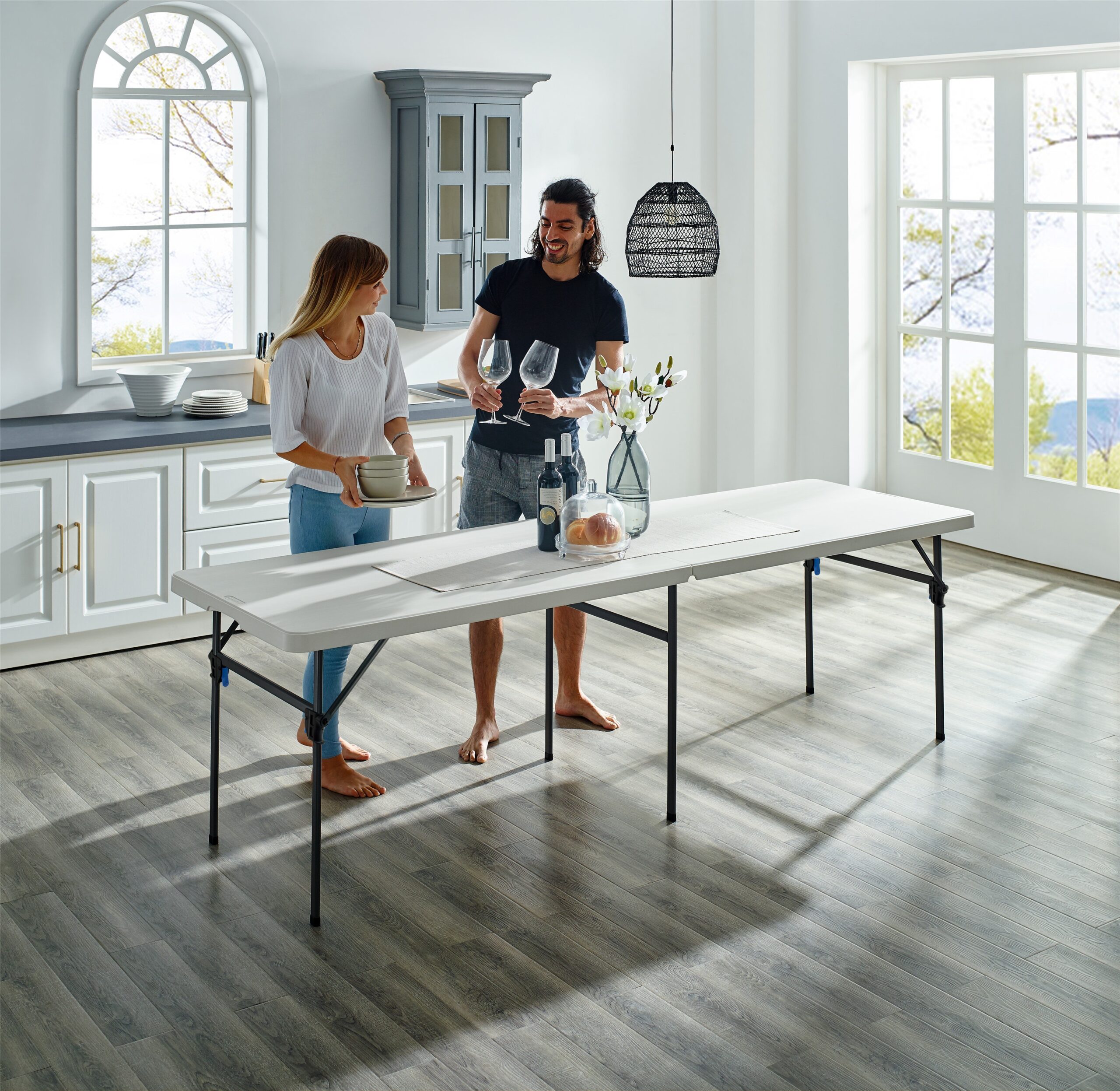Mainstays 6 Foot Fold-in-Half Table. White Granite