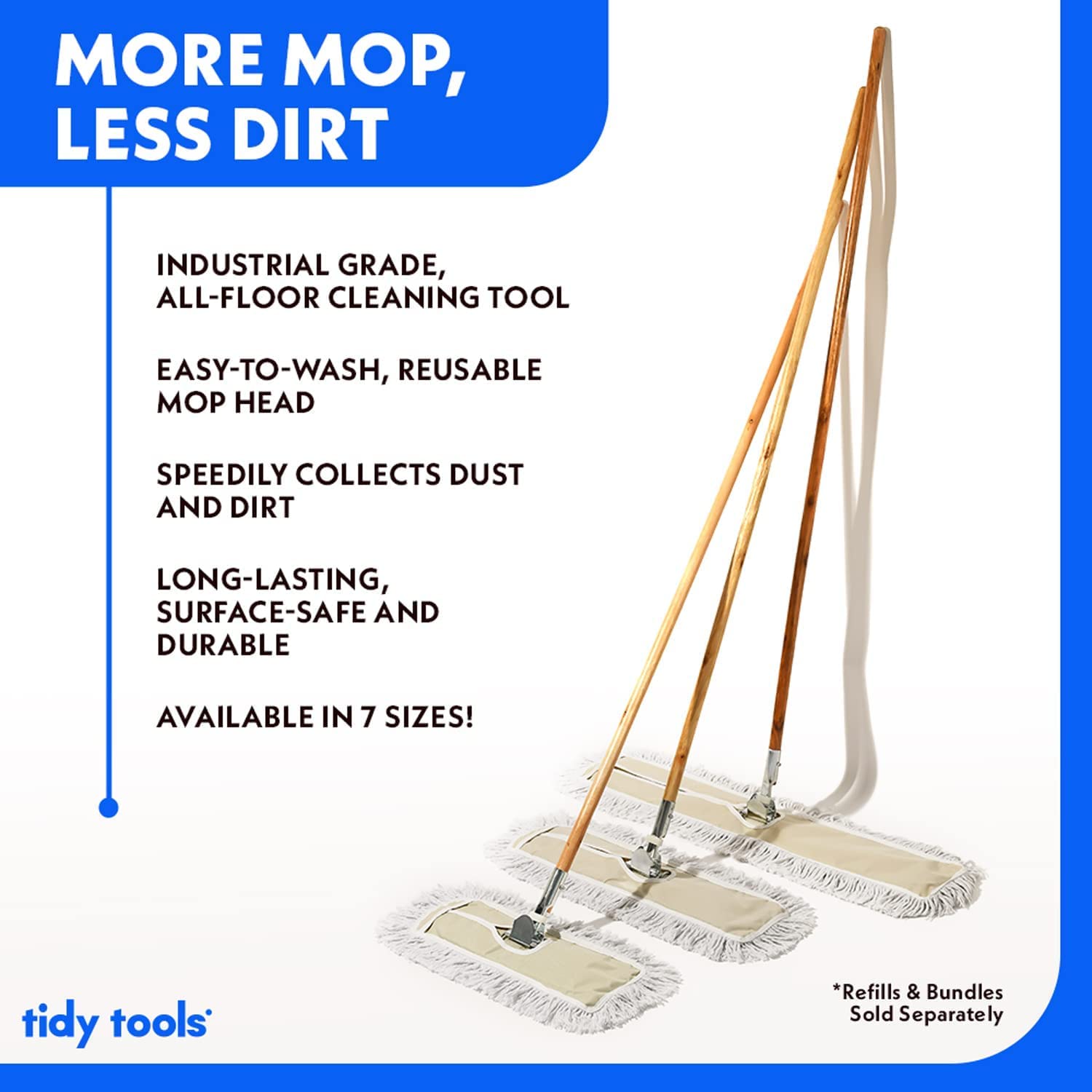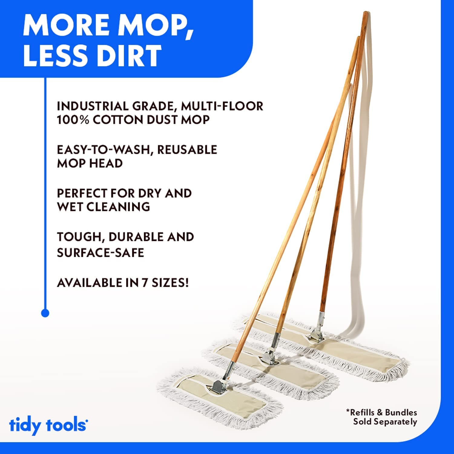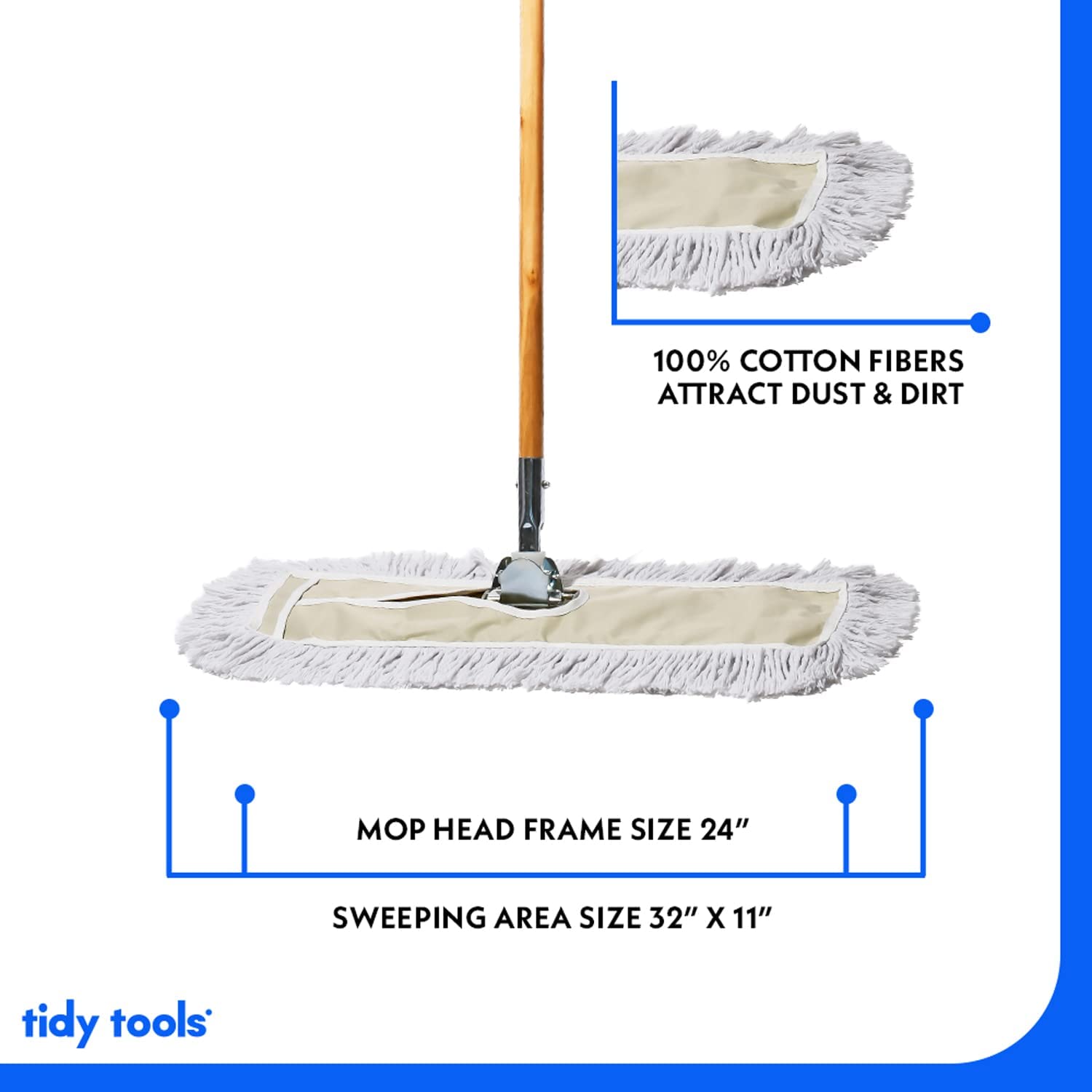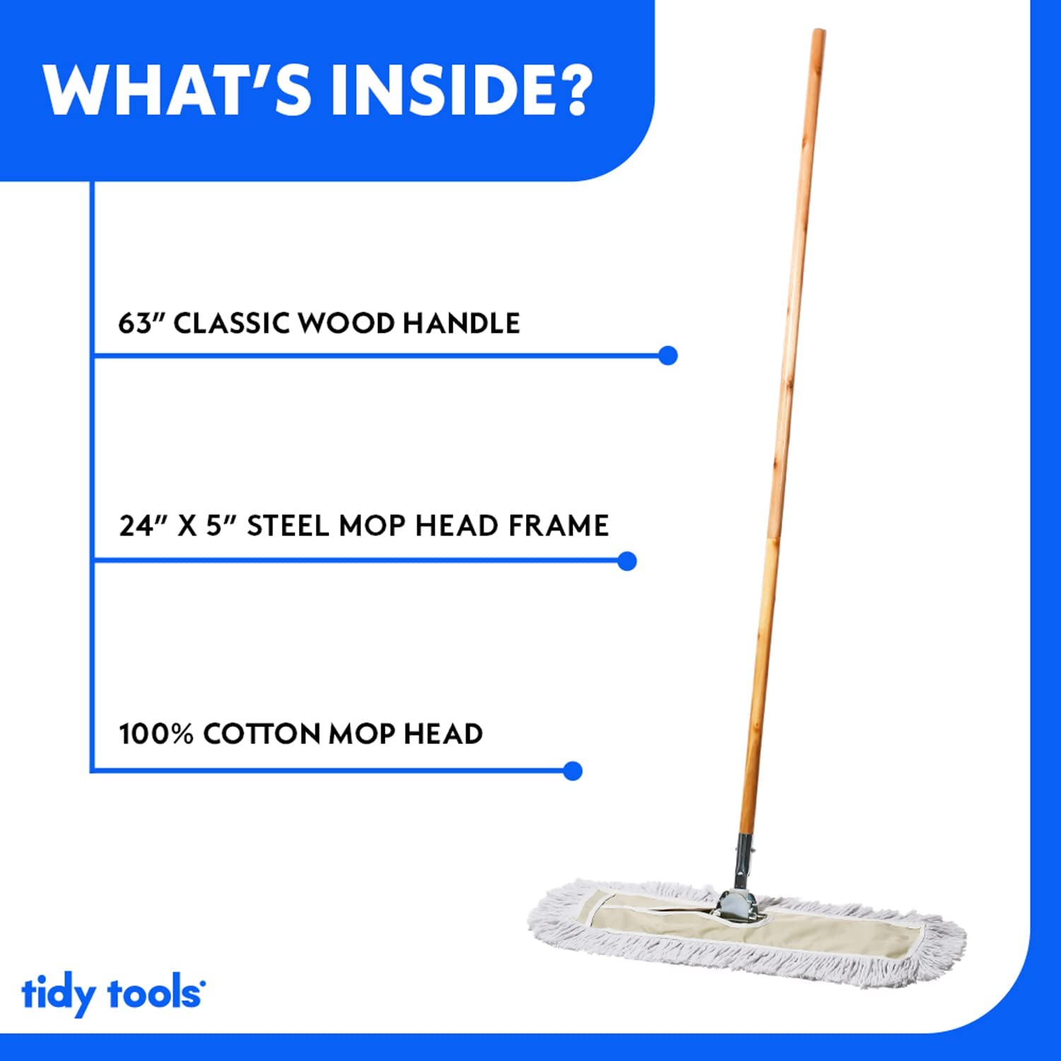 Tidy Tools Commercial Dust Mop & Floor Sweeper – 24 x 5 in. Cotton Reusable Mop Head. Wooden Broom Handle. & Metal Frame – Industrial Dust Mops for Floor Cleaning & Janitorial Supplies