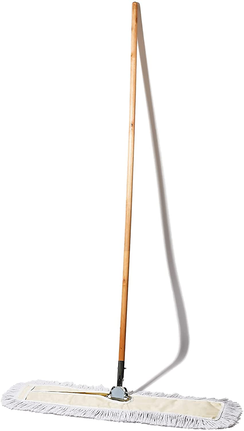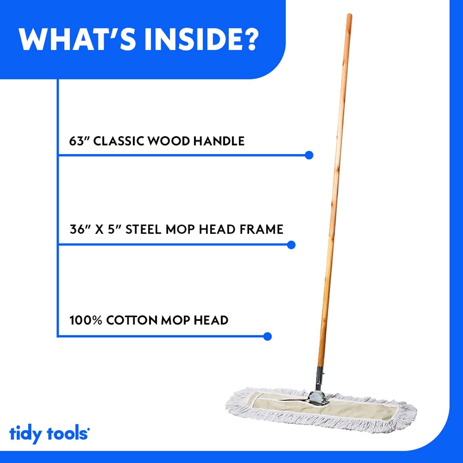 Tidy Tools Commercial Dust Mop & Floor Sweeper – 36 X 5 in. Cotton Reusable Mop Head. Wooden Broom Handle & Metal Frame – Industrial Dust Mops for Floor Cleaning & Janitorial Supplies