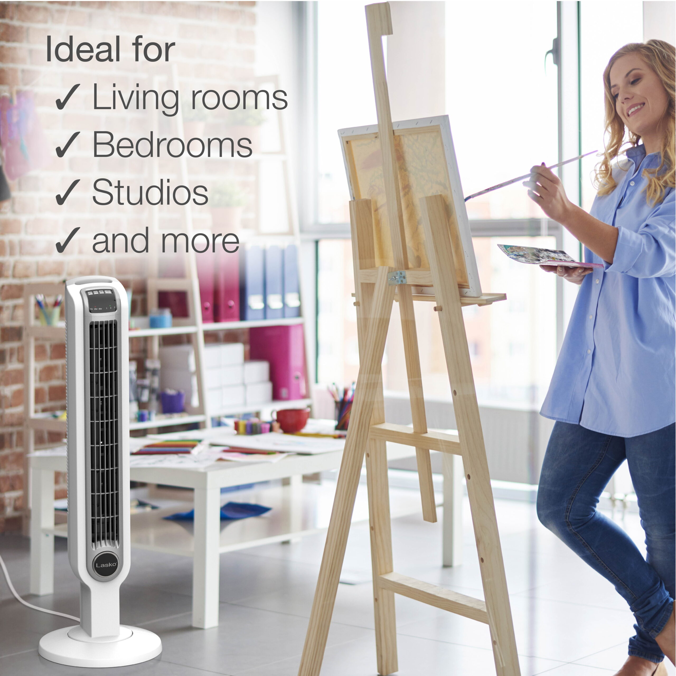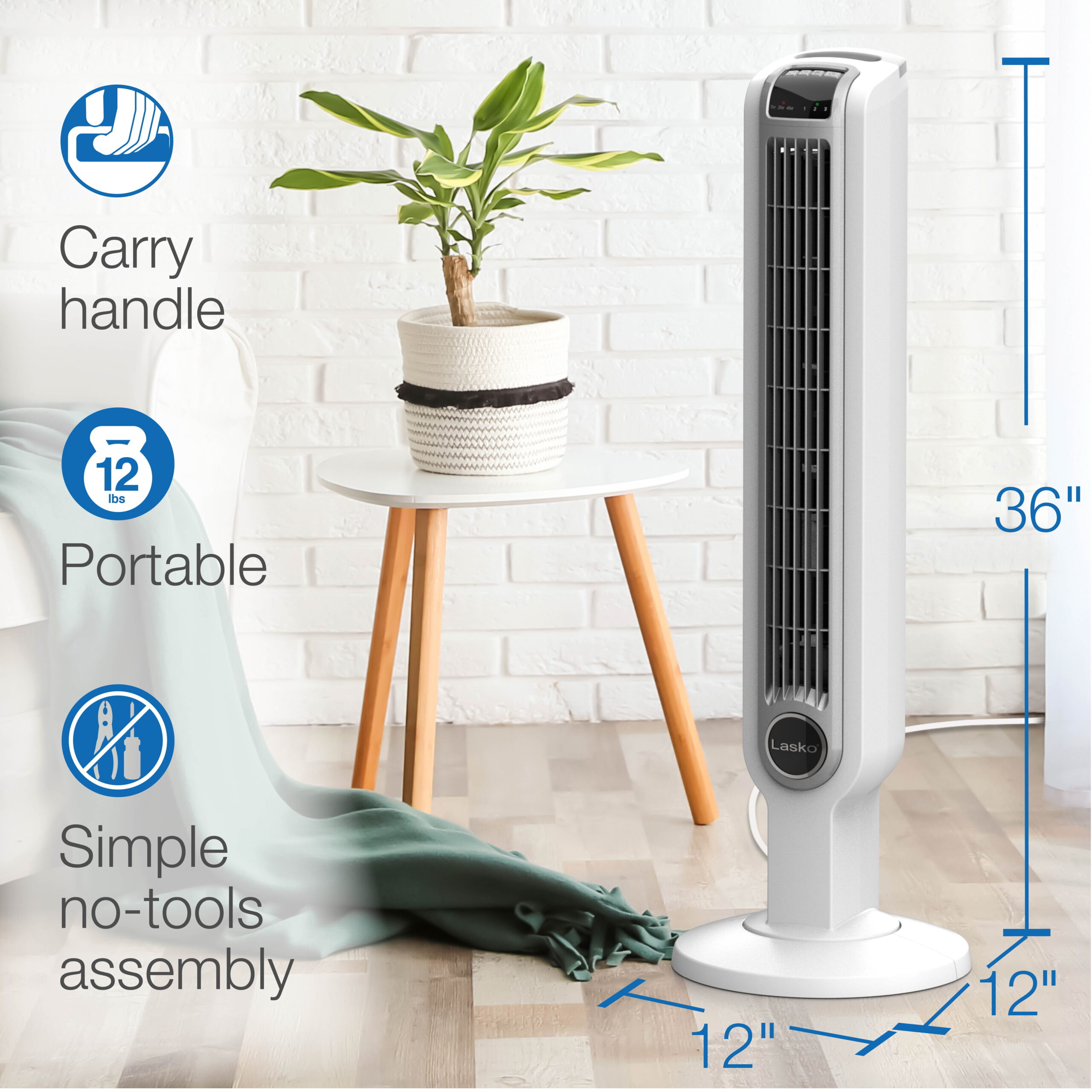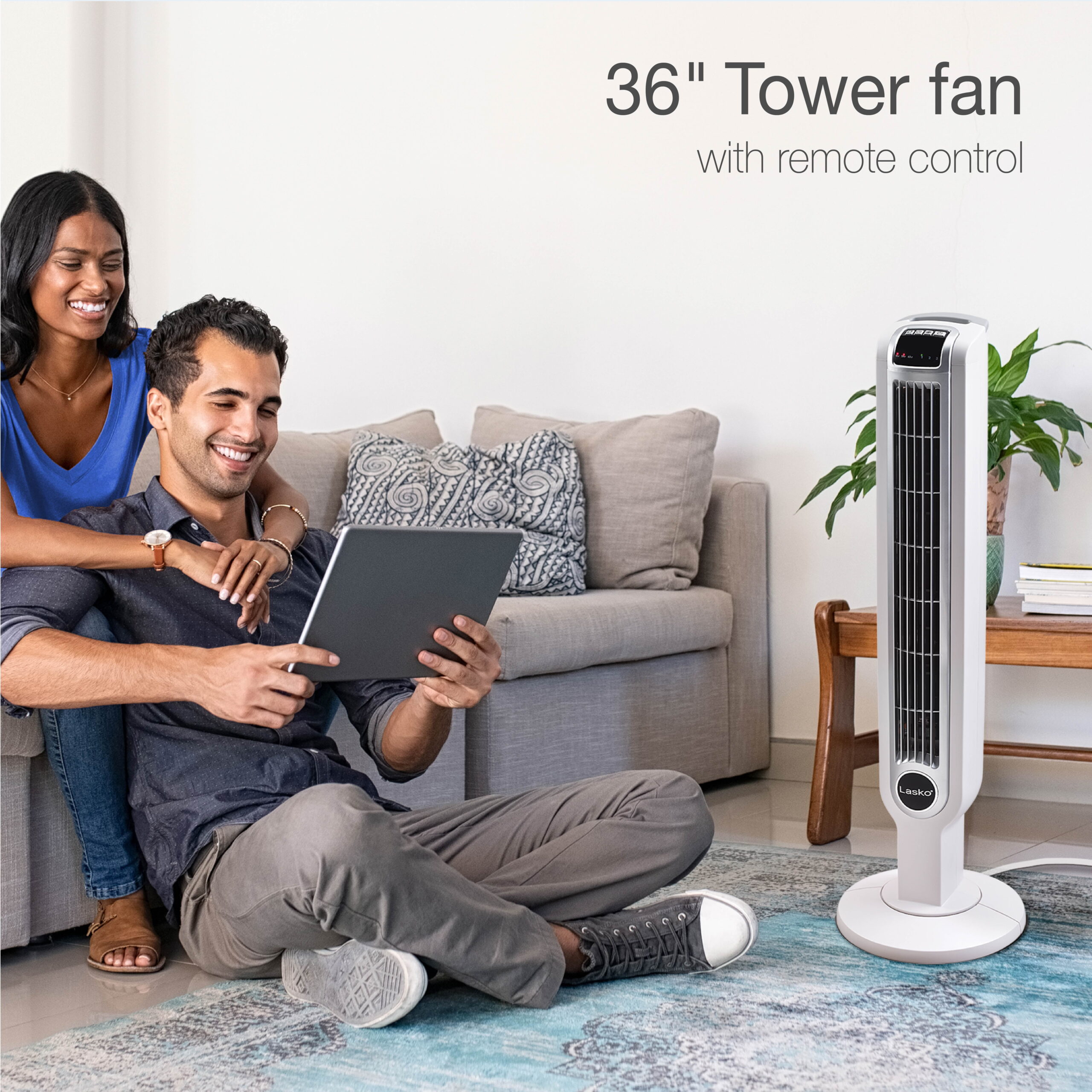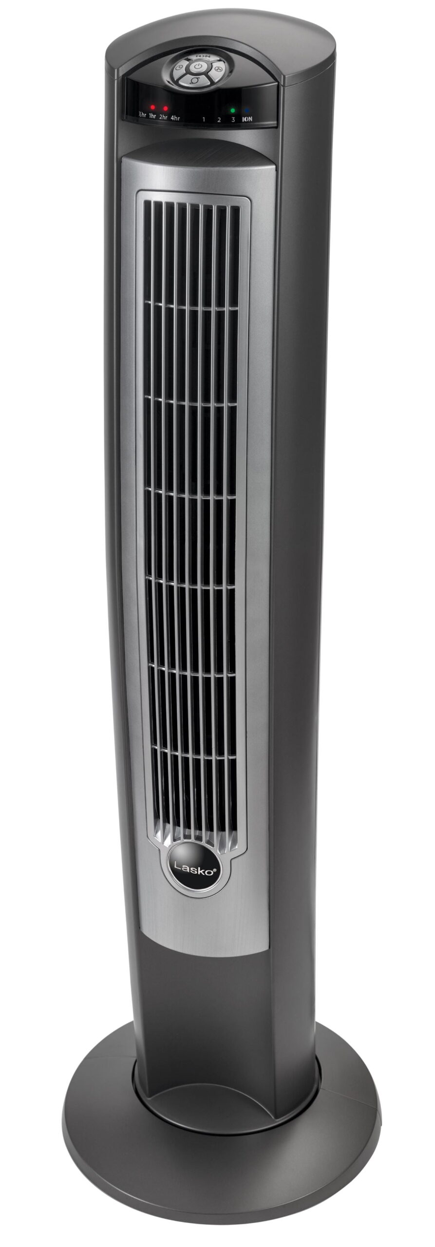 Lasko 38″ Wind Tower 3-Speed Oscillating Tower Fan with Remote and Timer. 2519. Gray